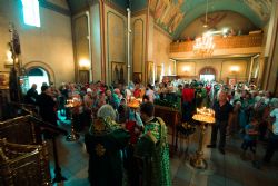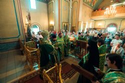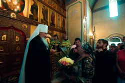 По окончании богослужения правящий архиерей поздравил священнослужителей и прихожан с престольным праздником и поблагодарил настоятеля за труды.