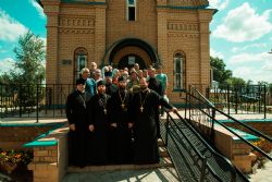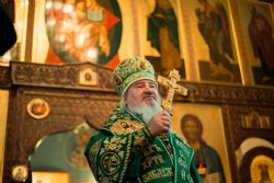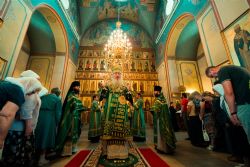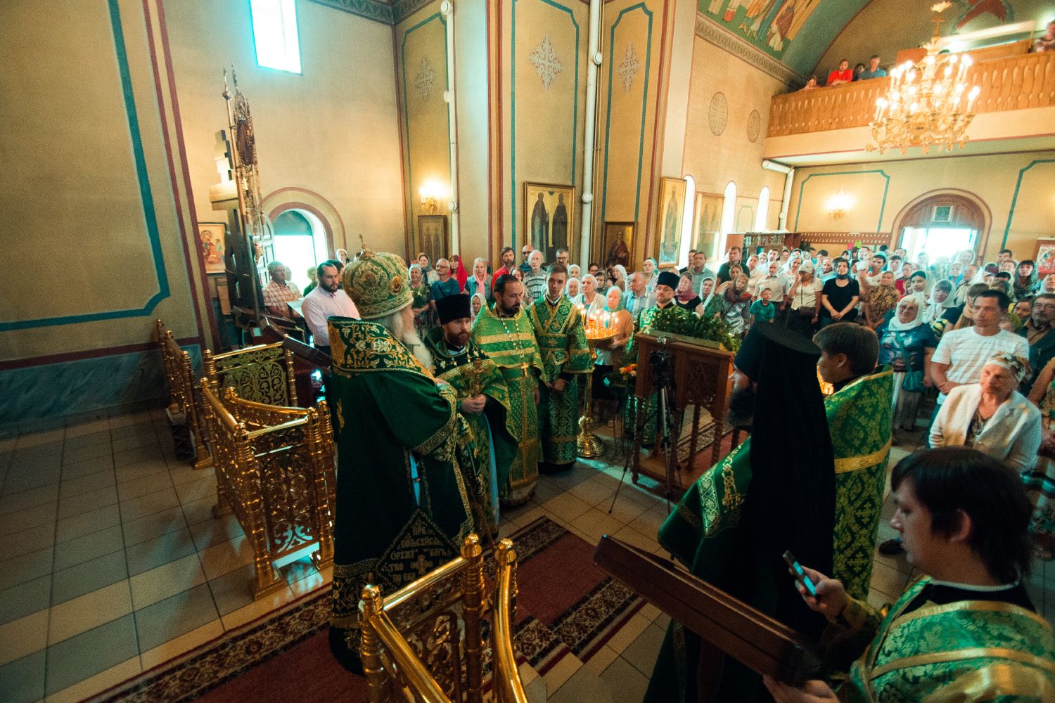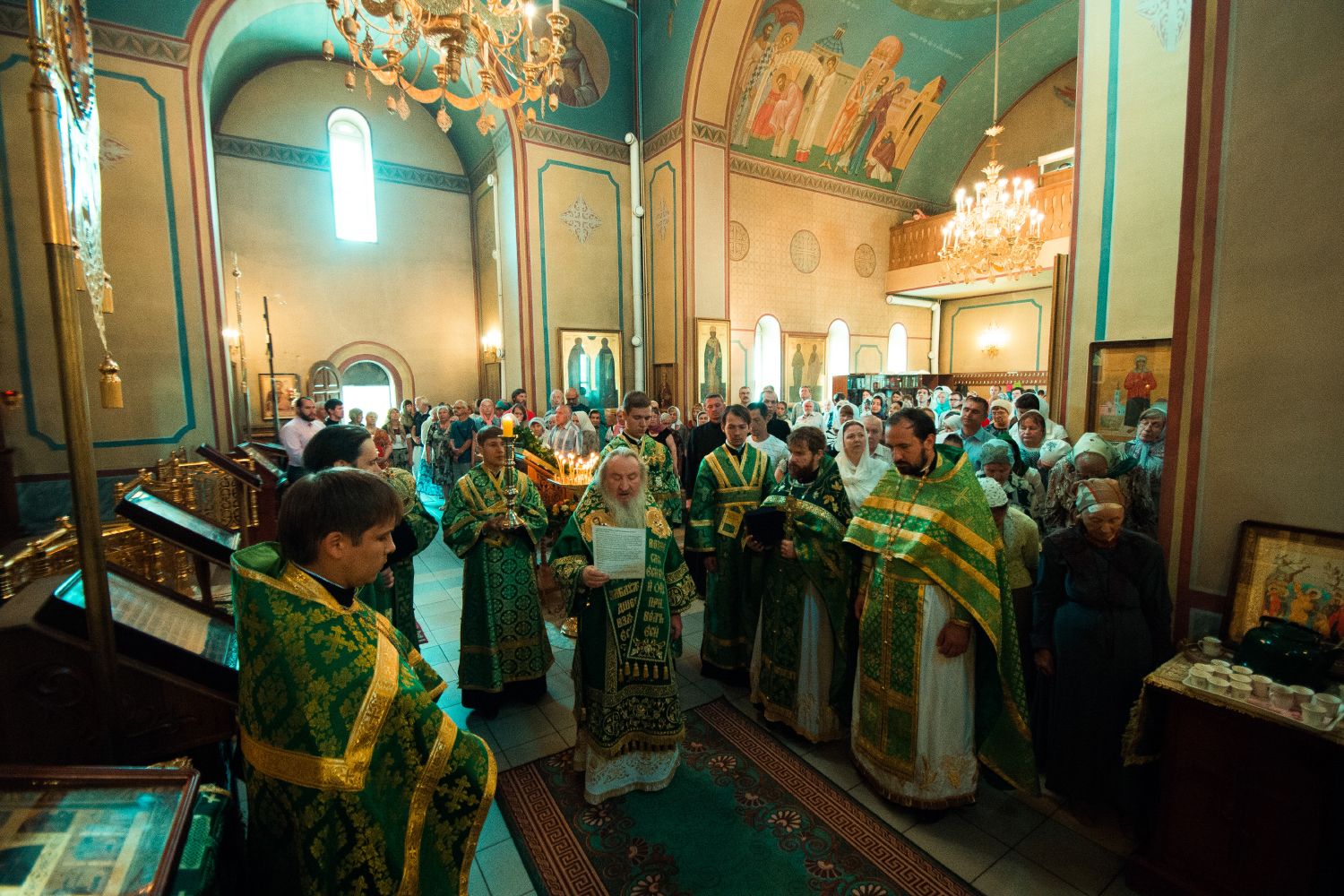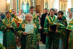 Его Высокопреосвященству сослужили настоятель прихода иерей Сергий Петров, настоятель Свято-Введенского Кизического мужского монастыря города Казани игумен Пимен (Ивентьев), настоятель храма в честь апостола Иоанна Богослова села Масловка иерей Сергий Нечипоренко.