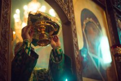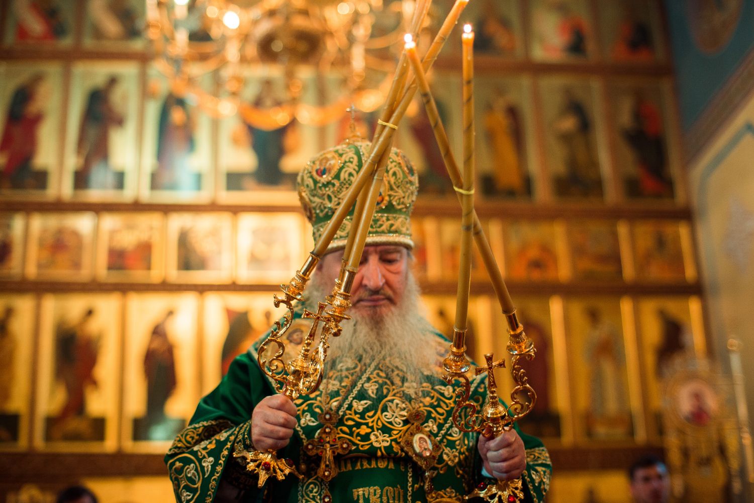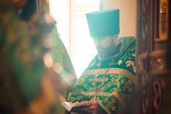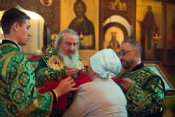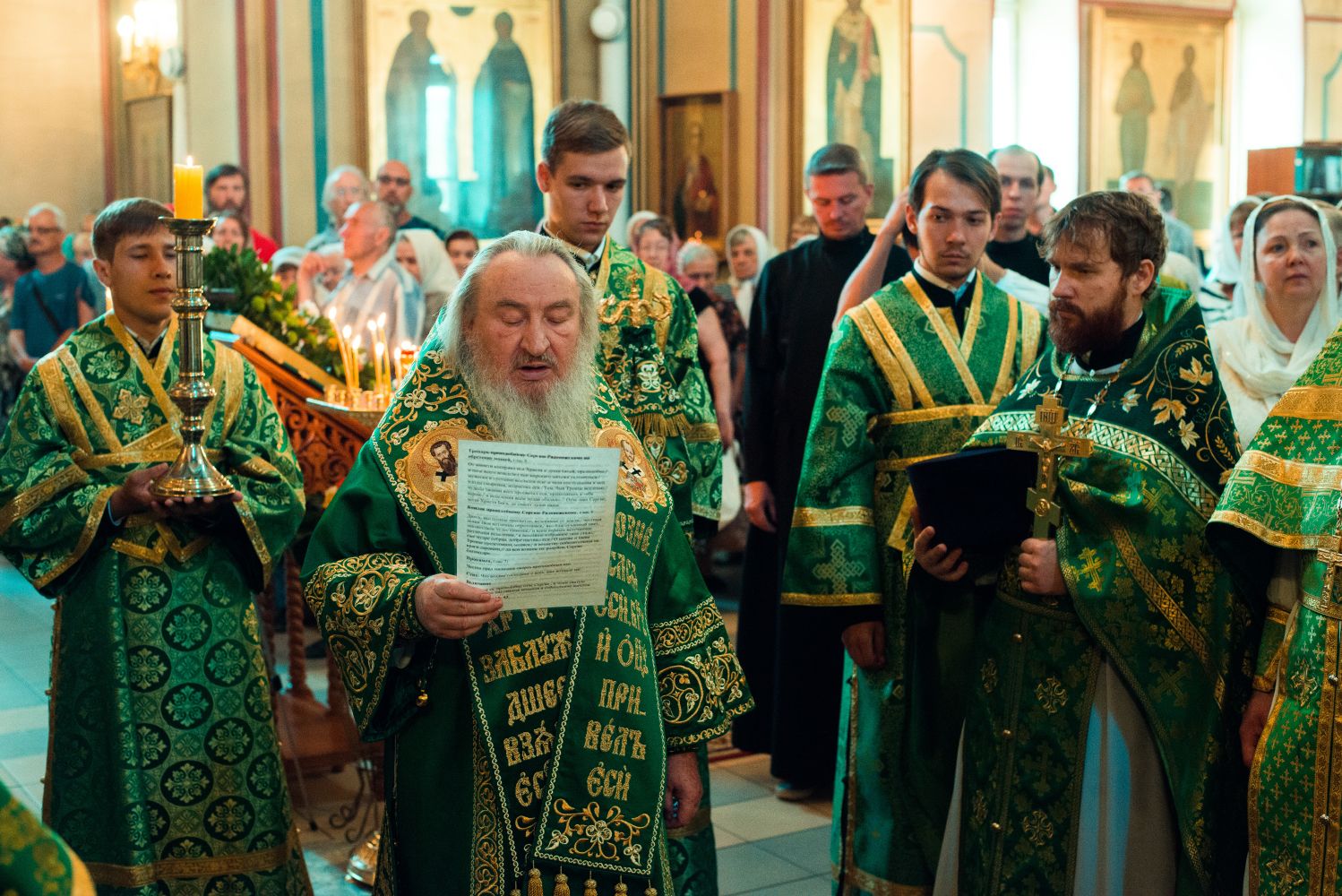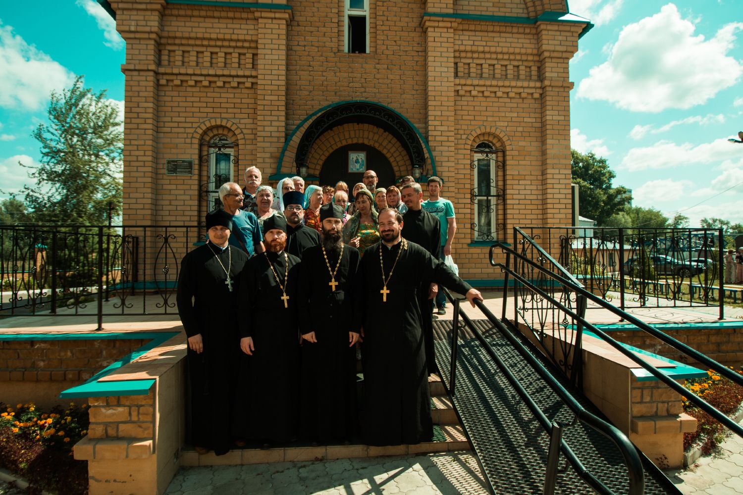 Его Высокопреосвященству сослужили настоятель прихода иерей Сергий Петров, настоятель Свято-Введенского Кизического мужского монастыря города Казани игумен Пимен (Ивентьев), настоятель храма в честь апостола Иоанна Богослова села Масловка иерей Сергий Нечипоренко.