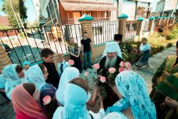В свою очередь, представители общины выразили благодарность митрополиту Феофану за его слова и помощь, оказываемую их организации и преподнесли букет цветов. Архиерей пообещал в дальнейшем встретиться с ними с целью общения и знакомства с деятельностью приходского центра слабослышащих. Также митрополит Феофан раздал им иконки с образом Казанской Божией Матери.