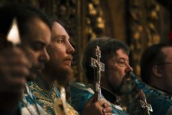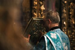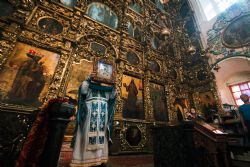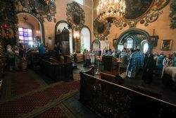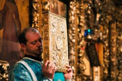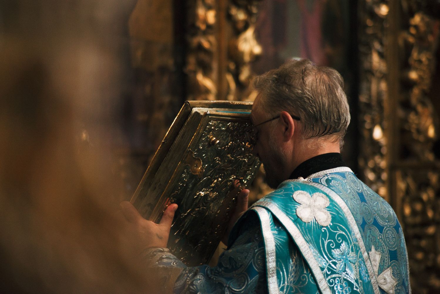 После запричастного стиха клирик собора иерей Алексий Каст прочитал проповедь, посвященную истории чествуемого образа Пресвятой Богородицы.