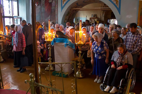 По окончании Божественной литургии духовенство и молящиеся отправились крестным ходом к святому источнику, где было совершено молебное пение с водоосвящением.