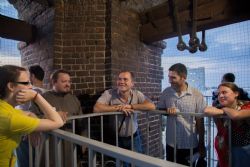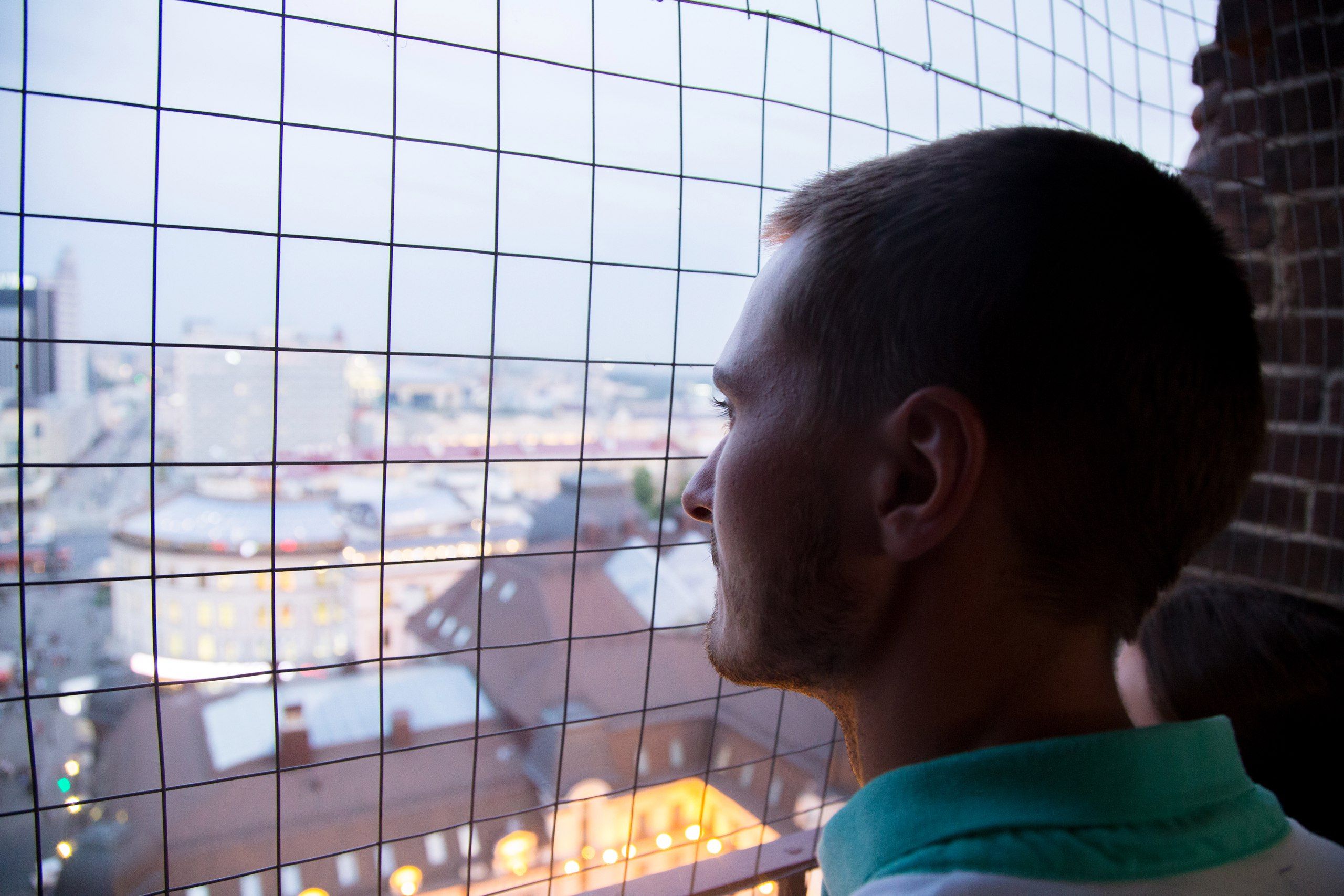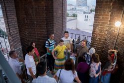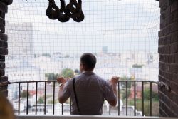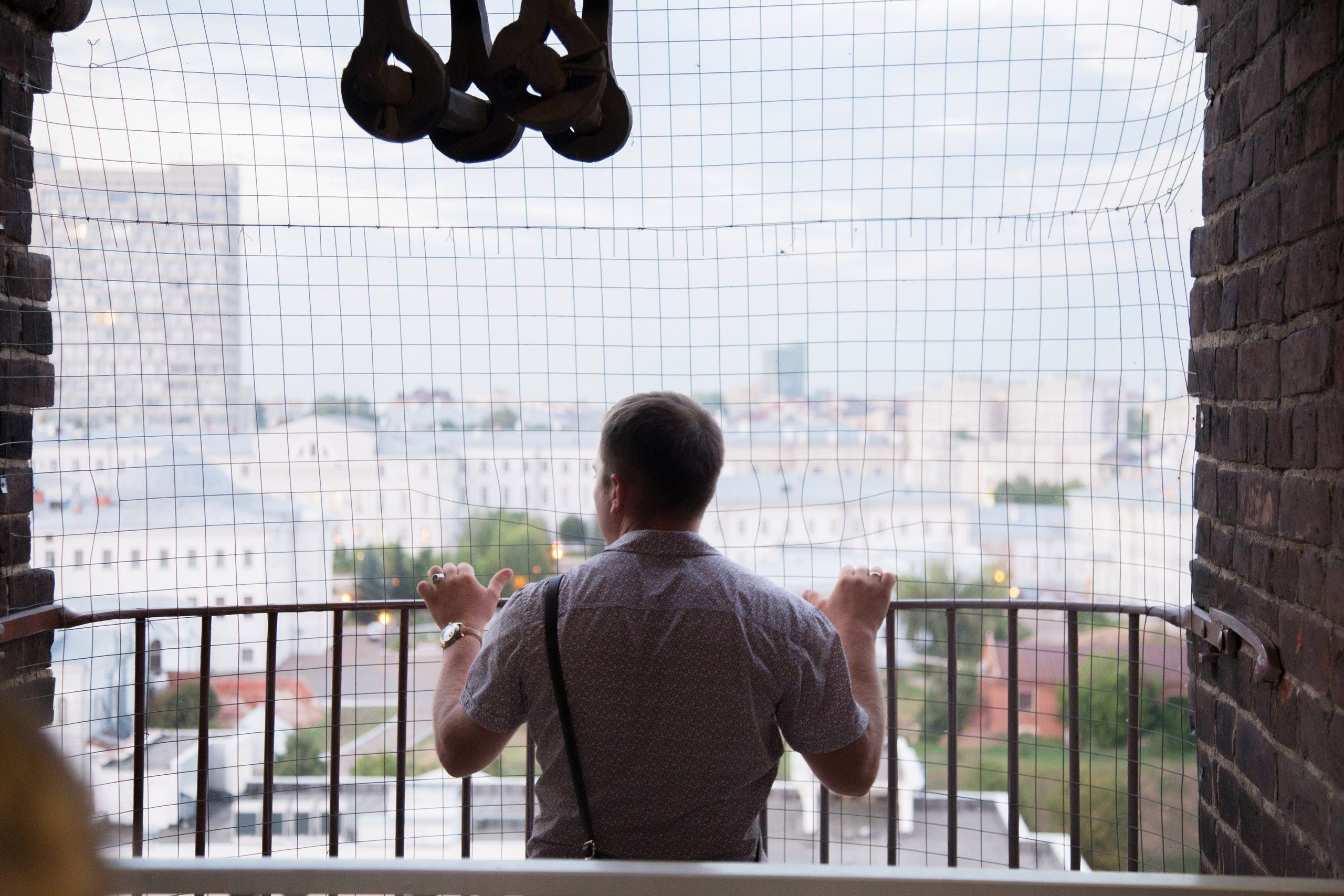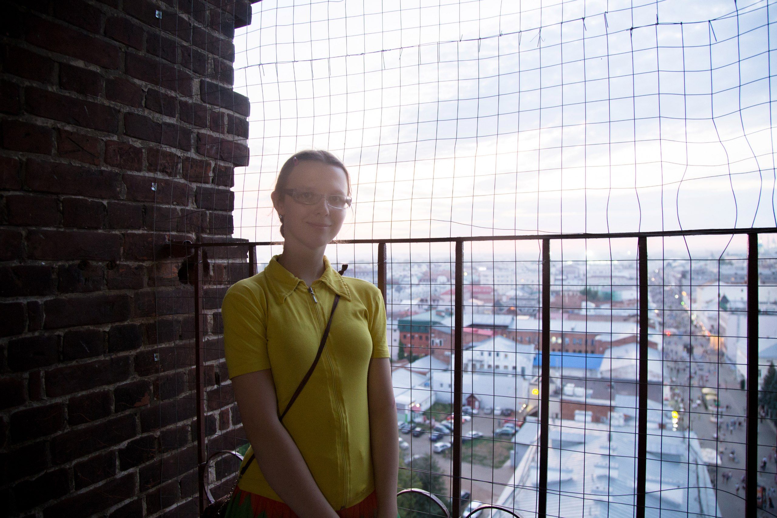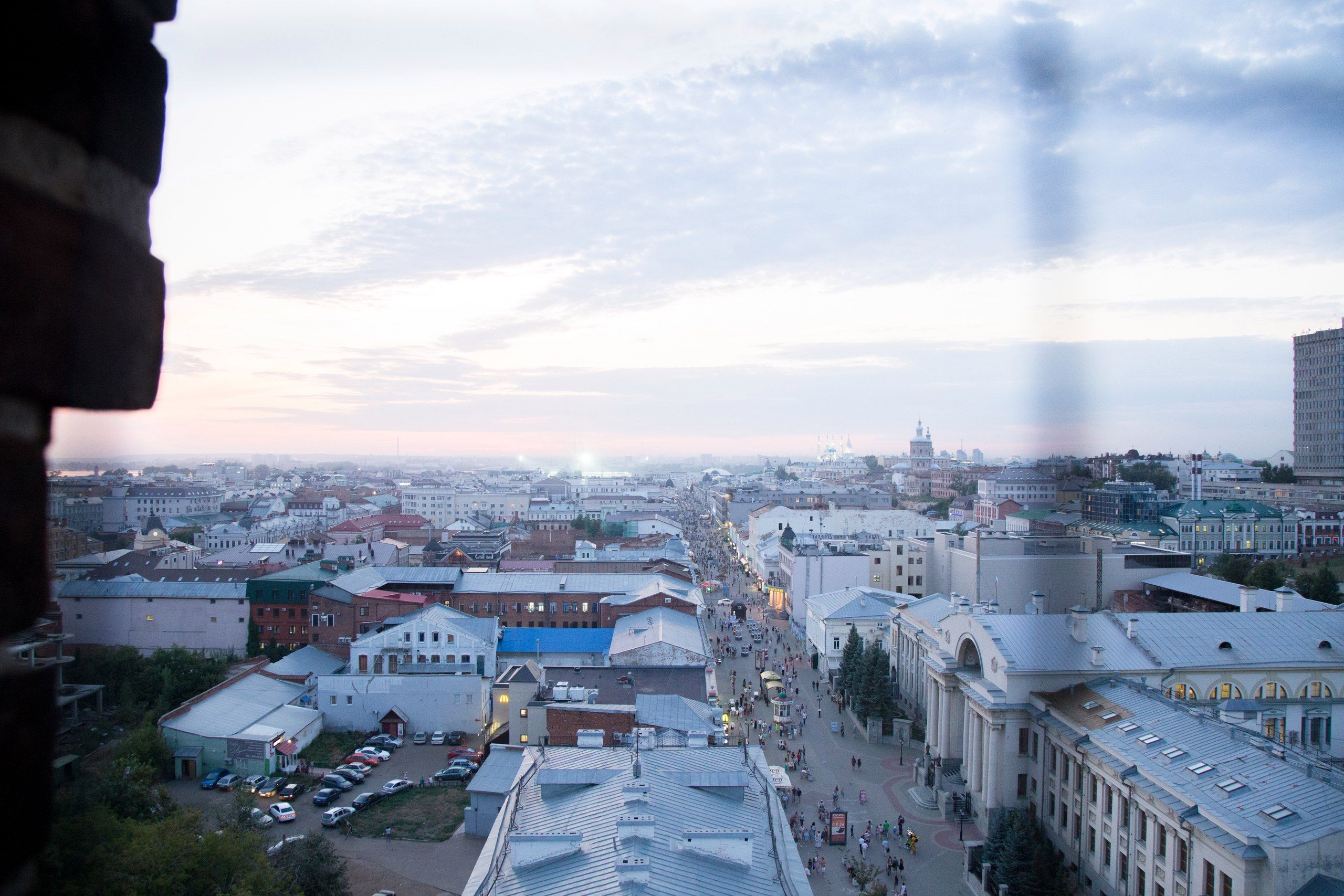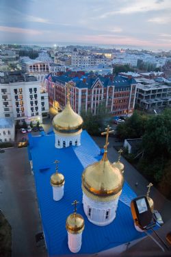 При подъеме на колокольню каждому невольно вспоминалась гора Фавор — та самая, где и было Преображение Господа и Спаса нашего Иисуса Христа. И уже на самой смотровой площадке, когда шум центральной улицы, суета, звуки мегаполиса остались внизу, возникали новые мысли — о преображении в каждом человеке, о предназначении, о красоте и многогранности созданного Творцом мира. На высоте 74 метра каждый старался ухватить глазом как можно «дальше», рассмотреть любимые здания и даже приглядеться к далекому Свияжску. Фото на память и отеческие наставления молодым от отца Алексия — также на память.