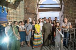 Праздничная служба, поздравления, соборная молитва ждали ребят вечером 18 августа. А после, во главе с настоятелем собора протоиереем Алексием Державиным представители молодежного клуба «Азбука» поднялись на отремонтированную смотровую площадку колокольни. Рассказывая историю храма, священник поведал интересные факты о его создании, о возведении колокольни. Рассказал отец Алексий и о тяжелых годах в жизни собора — молодежь узнала, что после закрытия в нем какое-то время располагался зоопарк, и в алтаре находился бегемот, уже потом здесь разместили спортзал КГУ. Из живых и эмоциональных рассказов священника ребята представили, как собор восстанавливался в 1996-97 года, как начиналась новая жизнь прихода.