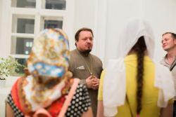 — Сегодня мы с вами поднялись на высоту 74 метра. Вроде немного, но повыше к небу, — с улыбкой обращается батюшка. — Тяжело подниматься было? Вот и мы должны помнить, что путь к Царству Небесному нелегкий. К Богу тяжело идти, тяжело идти против своих страстей, искушений, но нам это необходимо. На Фаворе сошла благодать Божия, апостолы ее почувствовали. И мы должны ее почувствовать! Читайте святителя Григория Паламу, он пишет о Божественном свете… Почему говорю вам, молодежи? Потому что люди постарше могут мыслить и так: «есть, что поесть, и слава Богу». А в молодом возрасте искушений больше, не зря же в псалме говорится «Грехов юности моей и неведения моего не помяни; по милости Твоей вспомни меня». В молодости мы не задумываемся. Хотелось бы, чтобы вы задумывались и через покаяние, через молитву шли к благодати, — напутствовал отец Алексий.