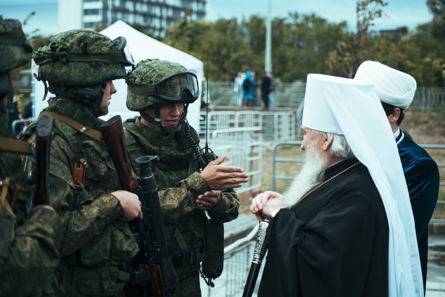 В этот же день глава Татарстанской митрополии посетил выставочную зону Казанского высшего танкового краснознаменного командного училища, где ознакомился с представленными в рамках этноконфессионального фестиваля образцами военной техники. Также состоялось общение владыки Феофана с начальником училища генералом-майором Владимиром Майстренко и курсантами.