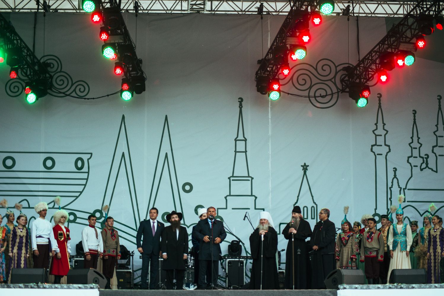 Перед собравшимися выступили творческие коллективы из Австрии, Казахстана и Республики Тыва. Также на концерте прозвучала духовная музыка в исполнении православных, мусульманских, лютеранских и иудейских коллективов.