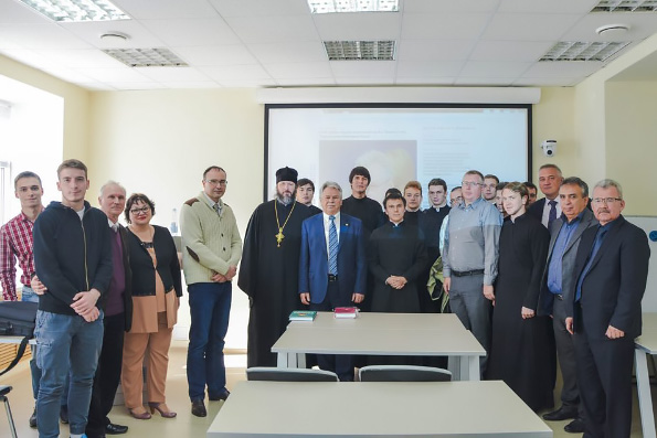 16 сентября в Института международных отношений, истории и востоковедения Казанского (Приволжского) федерального университета состоялась открытая лекция доктора исторических наук, профессора Валерия Тишкова «Этнокультурное многообразие России». Лекцию также посетили студенты Казанской православной духовной семинарии во главе с первым проректором игуменом Евфимием (Моисеевым) и преподавателем семинарии протоиереем Кириллом Бухараевым.