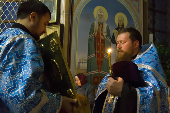 Немало людей пришли в этот вечер в Покровский храм, чтобы прославить Божию Матерь и вместе с другими верующими соборно помолиться о Ее заступничестве.