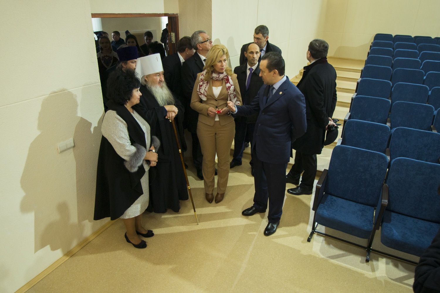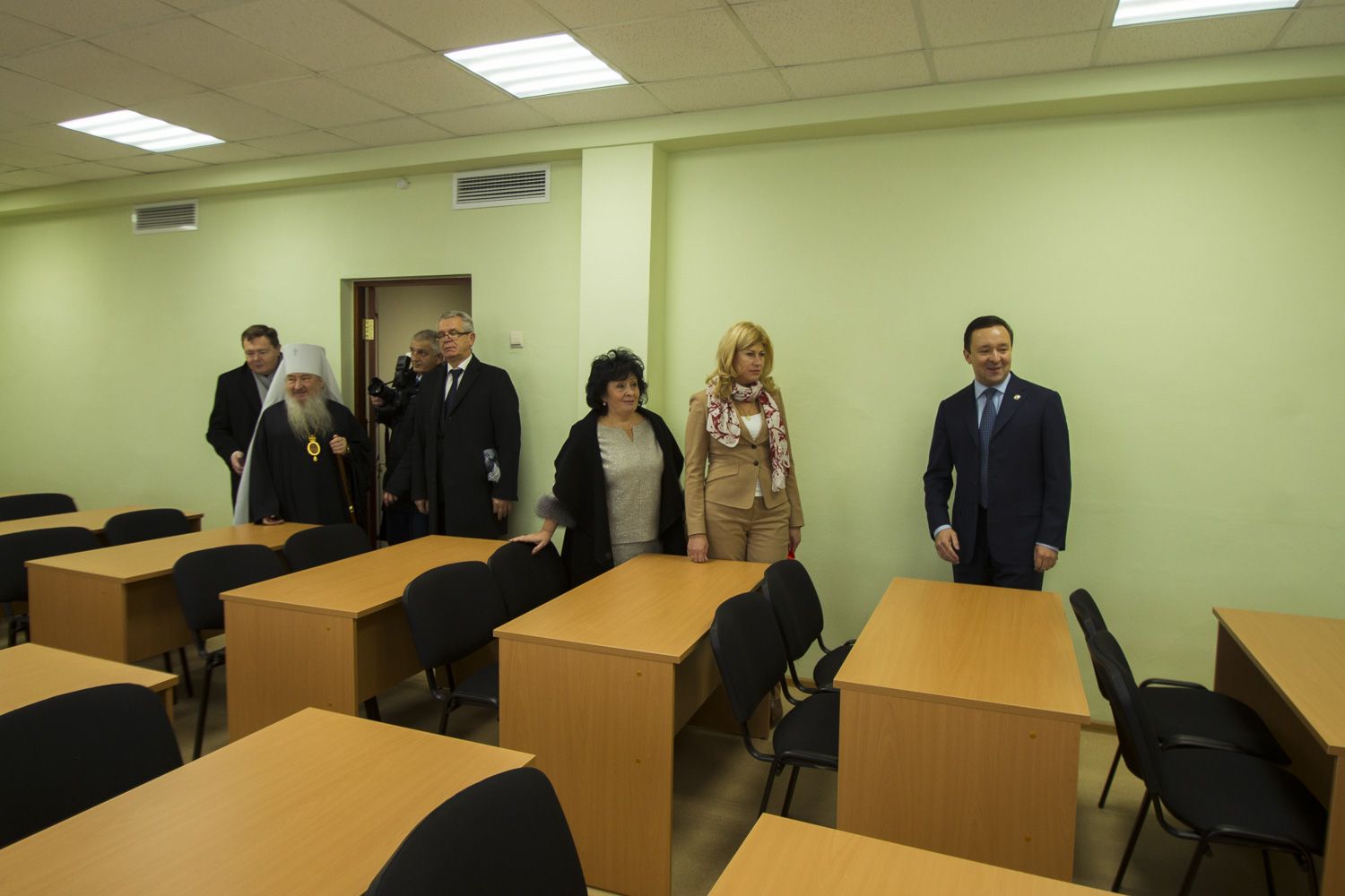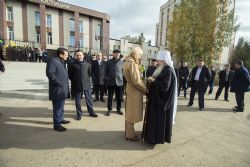По приглашению ректора вуза с открытием нового здания института педагогов и учащихся поздравил митрополит Казанский и Татарстанский Феофан.