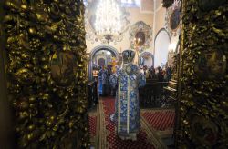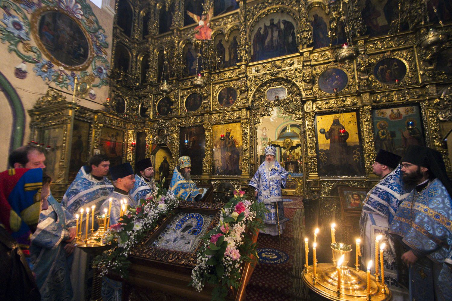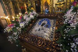 В завершение Литургии духовенство и молящиеся пропели славление Пресвятой Богородице перед Её чудотворным Седмиезерным образом.