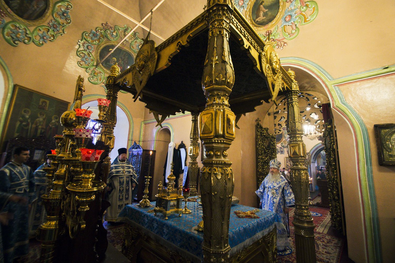 После богослужения правящий архиерей ознакомился с реставрационными работами, проводимыми в Петропавловском соборе.