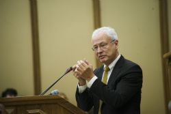 «Мы с особым вниманием относимся к соблюдению баланса между развитием татарского народа и обеспечением условий для процветания всех языков, культур и конфессий многонационального Татарстана. Символом такой политики является соседство мечети Кул-Шариф и Благовещенского собора в Кремле, реконструкция древнего Болгара и острова-града Свияжск, закладка камня в основание собора Казанской иконы Божией Матери и возведение Исламской академии в Болгаре», — сказал, в частности, Ф. Мухаметшин.