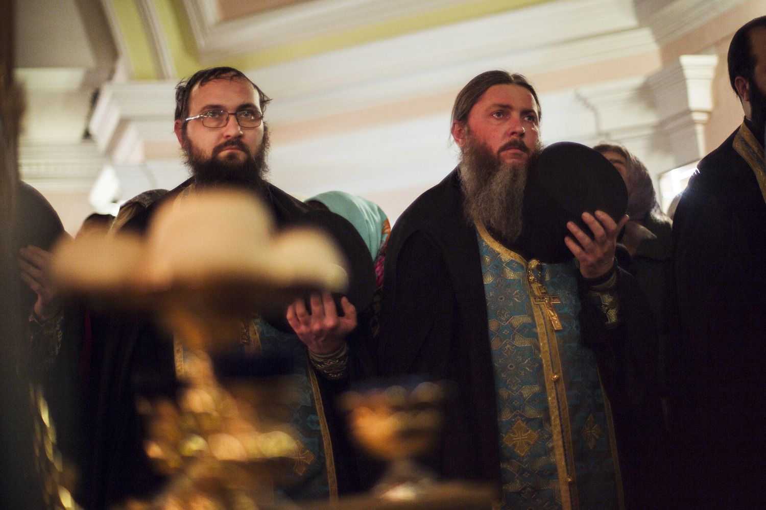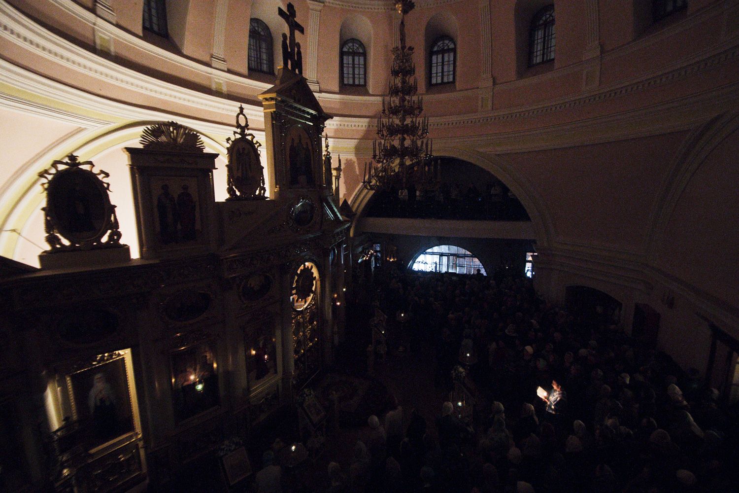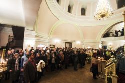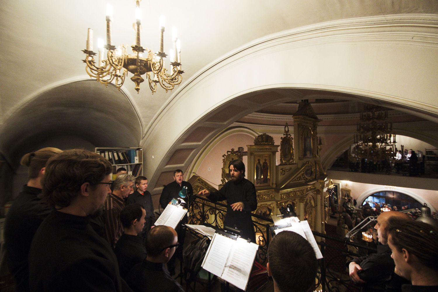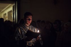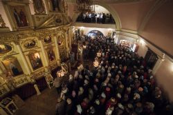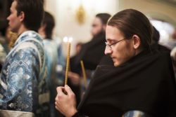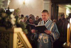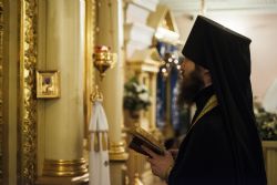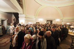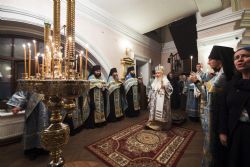 Песнопения вечернего богослужения исполнялись двумя монастырскими хорами: мужским под управлением Дениса Рогова и смешанным под управлением монахини Амвросии (Кочережкиной).