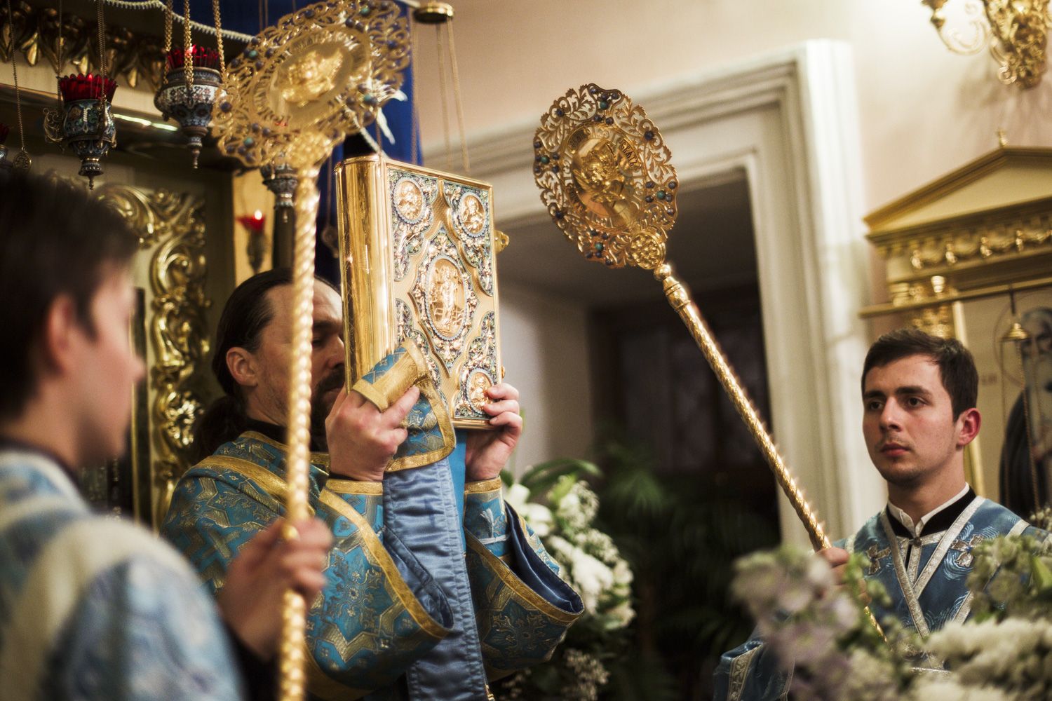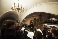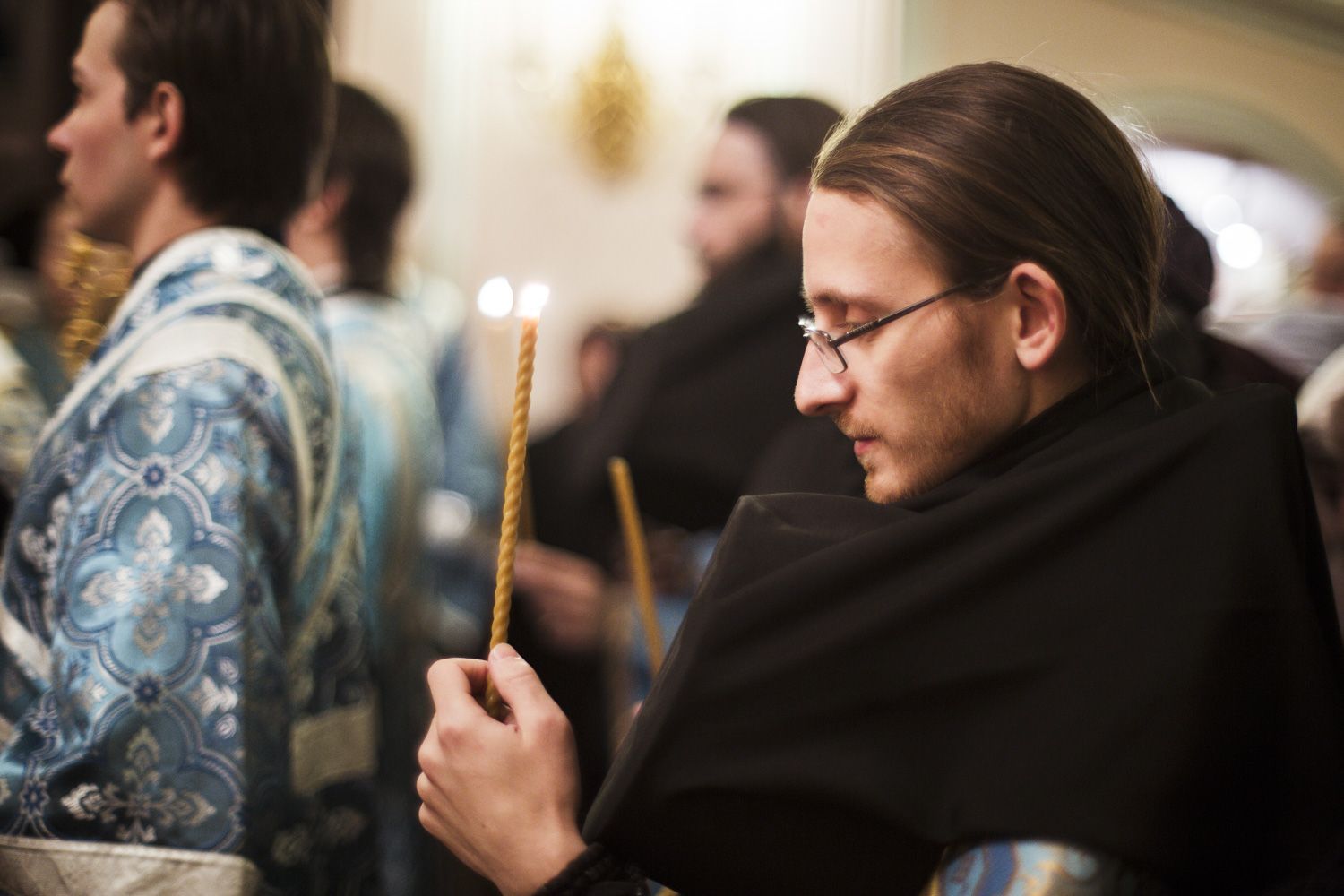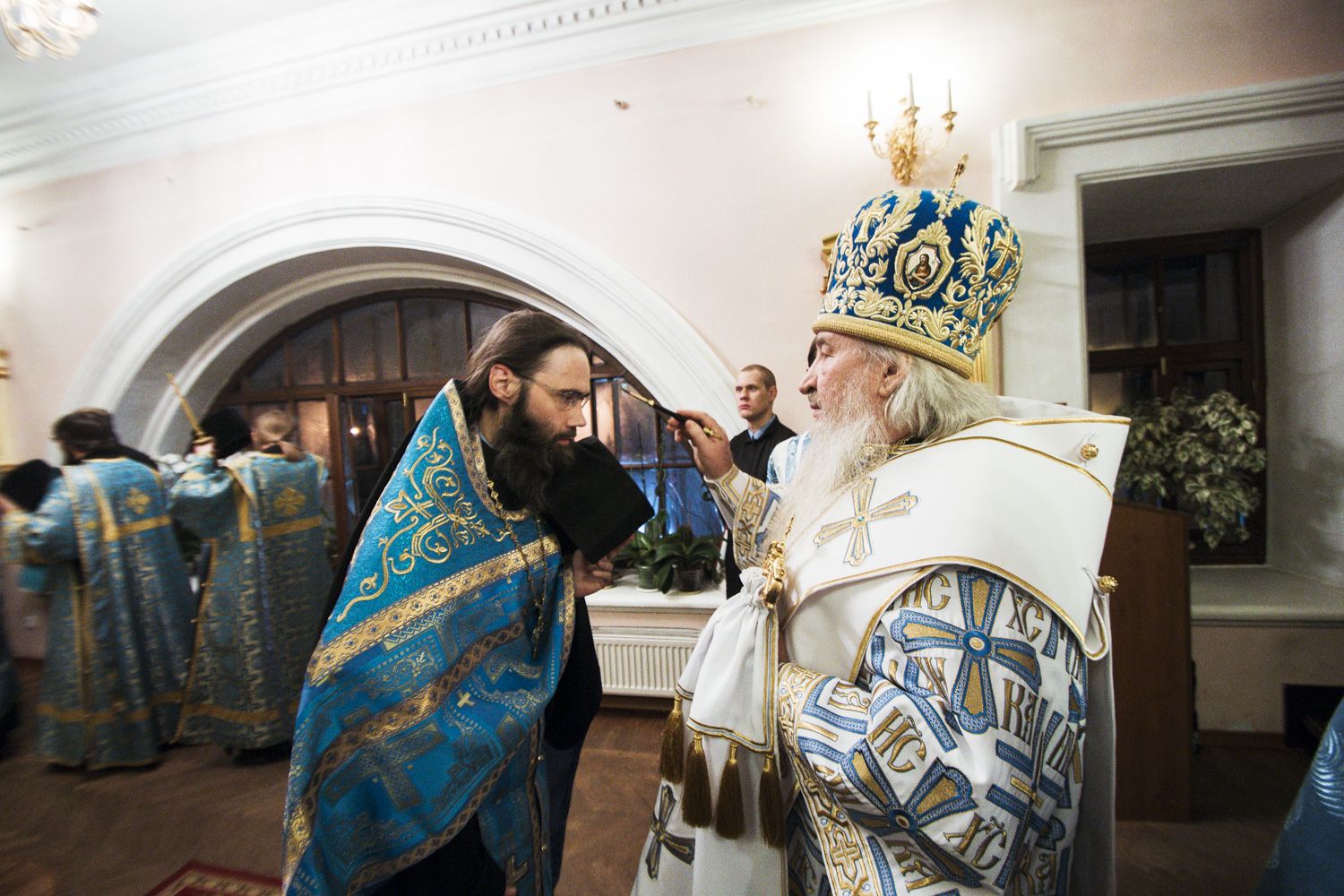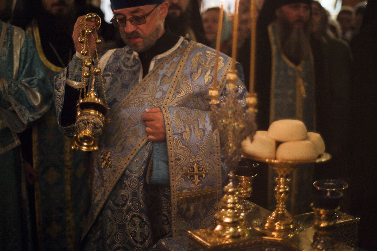 Песнопения вечернего богослужения исполнялись двумя монастырскими хорами: мужским под управлением Дениса Рогова и смешанным под управлением монахини Амвросии (Кочережкиной).