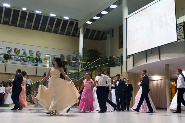 В программу бала были включены танцы XIX века. Прелестные девушки в великолепных вечерних платьях, импозантные мужчины и молодые люди, одетые в строгие пиджаки и фраки, кружили парами по залу и танцевали венский вальс, полонез, падеграс, менуэт, мазурку и польку.