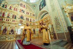 По благословению митрополита Казанского и Татарстанского Феофана Божественную литургию в праздничный день возглавил секретарь Казанского епархиального управления митрофорный протоиерей Владимир Самойленко. Его Высокопреподобию сослужении и.о. наместника Свияжской обители иеромонах Амвросий (Степанюк) с братией, настоятели монастырей и храмов города Казани.