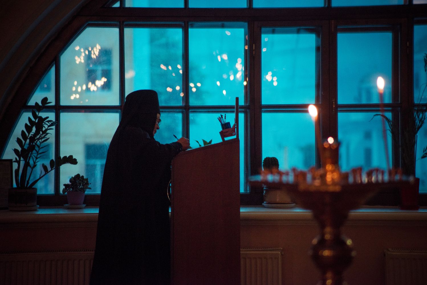 Сегодня я размышлял, в чём же служение епископское. На этот вопрос ответил апостол Павел, который в своём послании говорит, что первосвященник, входящий в Святая Святых, молится о своих грехах, а потом уже и о народе (см. Евр. 5:1-3). Я лично на себе это испытываю: если ты не молишься о своих грехах, Феофан, то ты не можешь учить других и подавать пример.