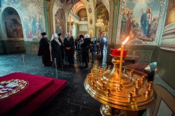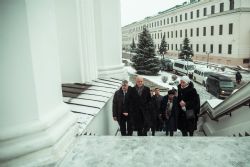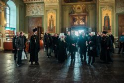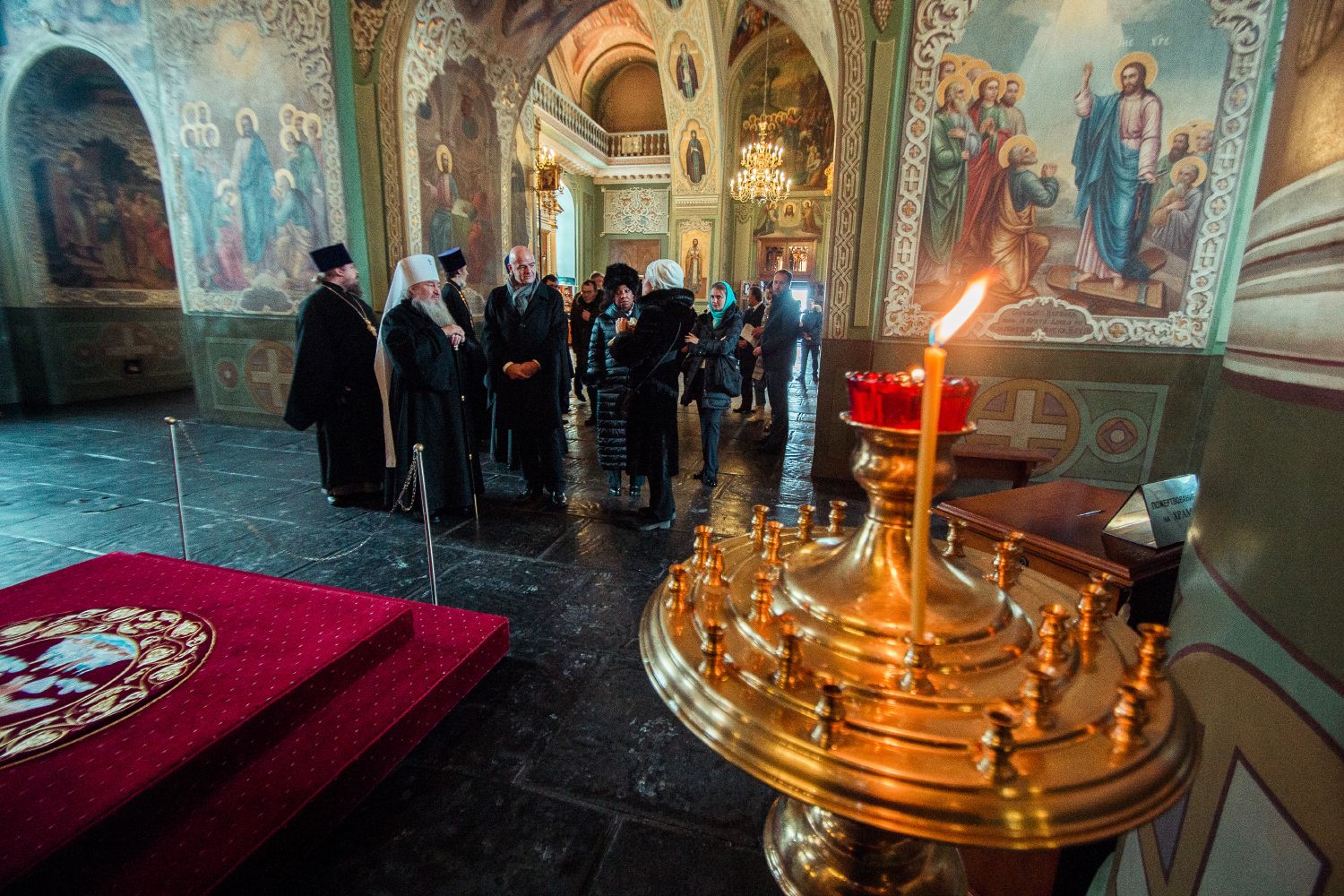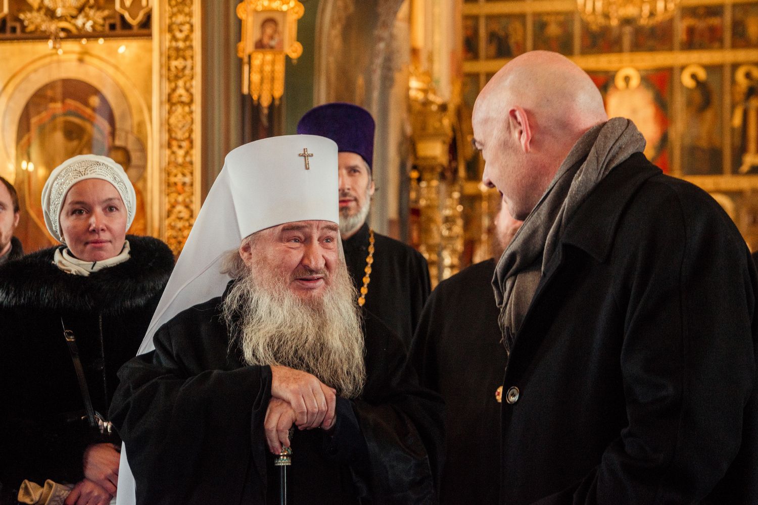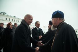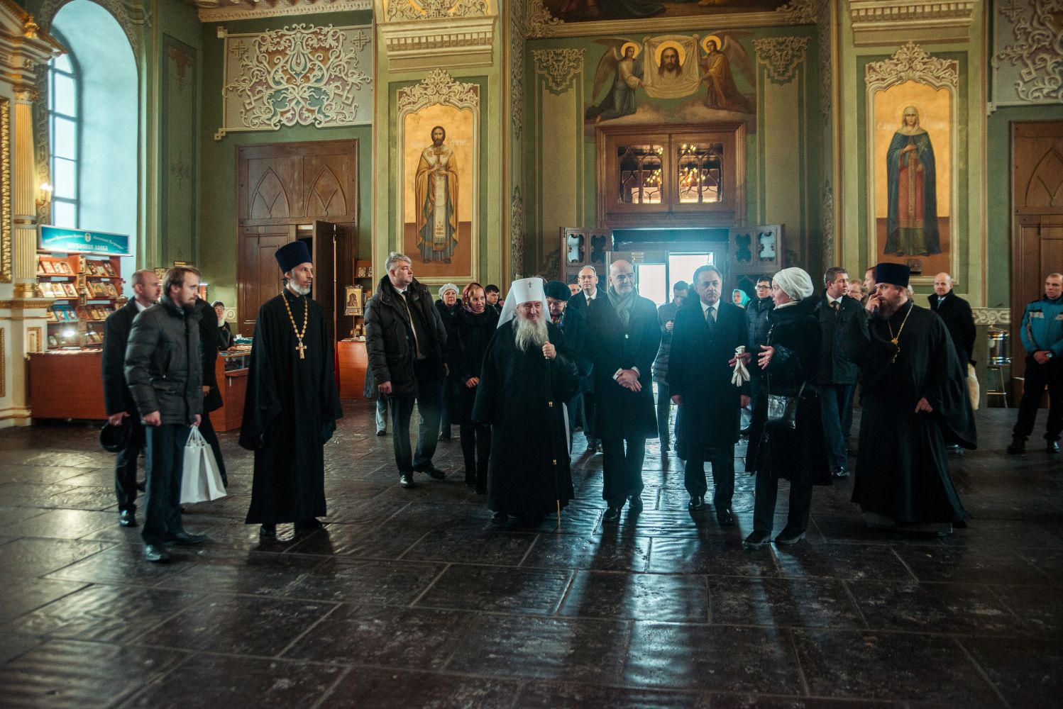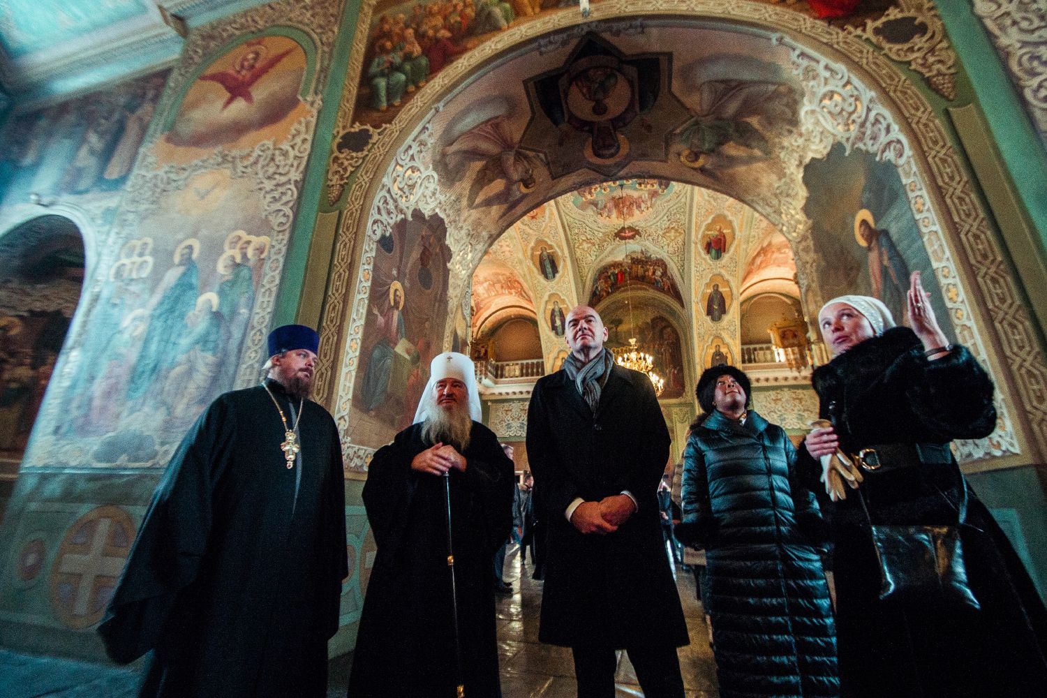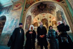 Глава Татарстанской митрополии тепло приветствовал прибывших в столицу Татарстана в преддверии Чемпионата мира по футболу высоких гостей и провел для них краткую экскурсию по собору.