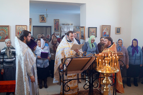— Дорогие братия и сестры, я от всей души поздравляю вас и настоятеля, отца Иоанна, с престольным праздником. Сегодня мы молимся Архистратигу Михаилу и всем бесплотным Небесным Силам, дабы они охраняли нас и Церковь нашу от всякого зла и навета диавольского. Отрадно видеть, что духовная жизнь на приходе возрастает. Здесь организовано «Общество трезвости», первое в нашем благочинии, которое послужит примером для других храмов. Ведётся воскресная группа как для взрослых, так и для детей. Я желаю вам, чтобы приумножался приход, не стесняйтесь исповедовать Христа, приводите детей и внуков в храм Божий, учите их вере, любви и добру. Помогайте немощным, больным и одиноким. Друг друга тяготы носите, и тако исполните закон Христов (Гал. 6, 2).