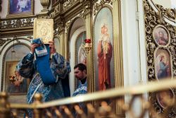 Божественную литургию в день совершения первой Литургии в храме иконы Божией Матери «Умиление» и всенощное бдение накануне вечером возглавил настоятель прихода преподобного Серафима Саровского протоиерей Дмитрий Салков. Отцу настоятелю сослужили клирики прихода.