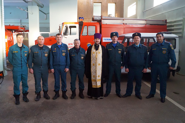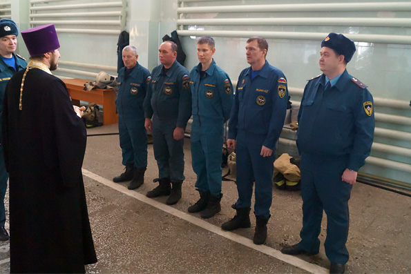 — Вы несёте ответственное служение, ликвидируете пожары, спасаете людей, каждое ваше действие, каждая минута может стоить жизни человека. Главное тут — понимать, что вы не только выполняете свою работу, но и сталкиваетесь с людским горем. В этих ситуациях на вас и ваш профессионализм рассчитывают пострадавшие. Вы одни из первых сталкиваетесь с бедой и человеческим горем, а может даже с жизнью и смертью. Желаю вам помощи Божией в несении ответственной службы. Пусть Господь сопутствует вам и Божия Матерь помогает в несении самоотверженного служения во благо народа и во славу Божию, — отметил священник.