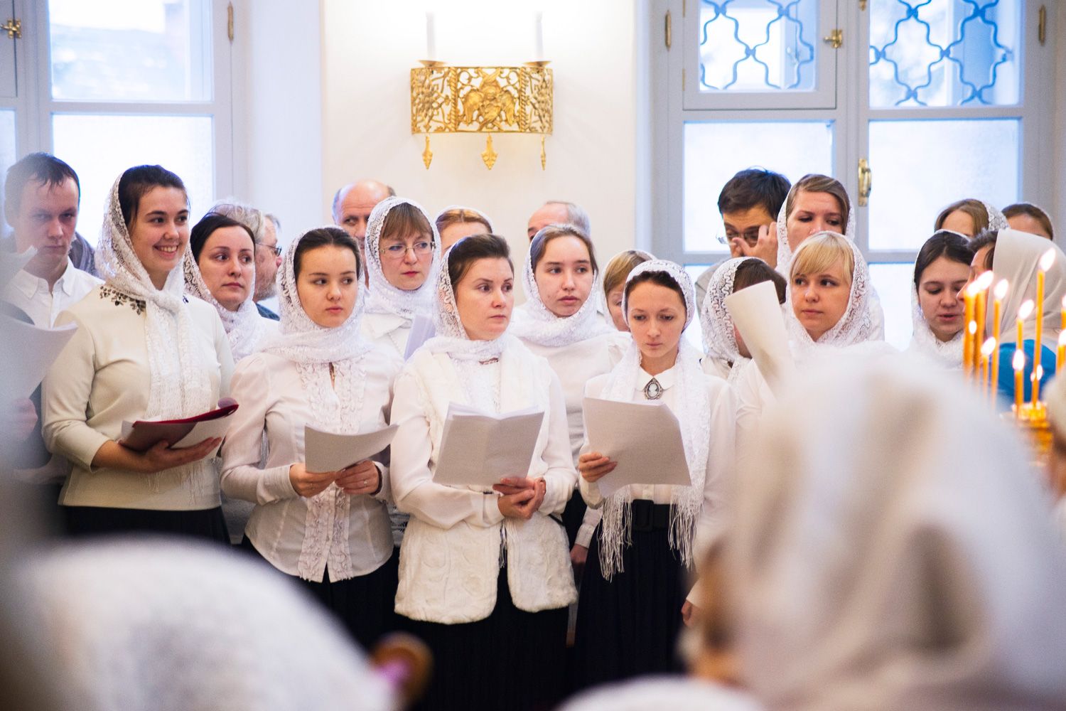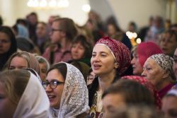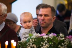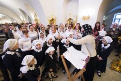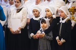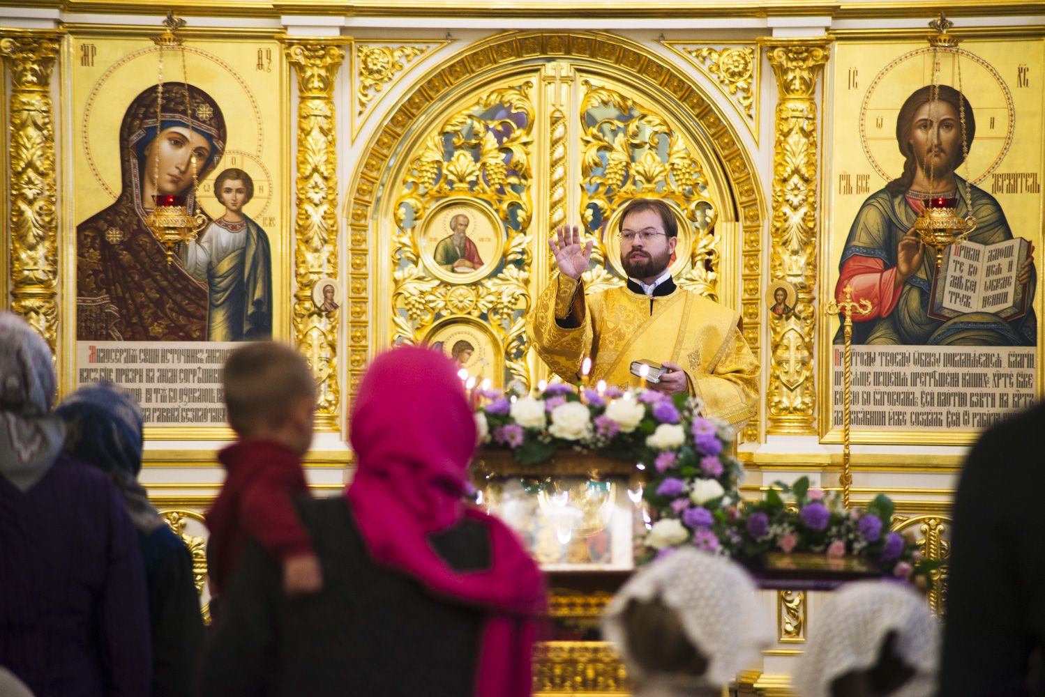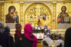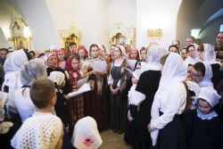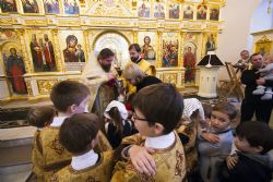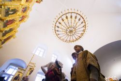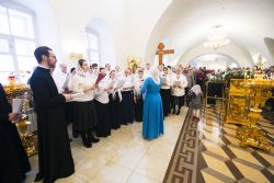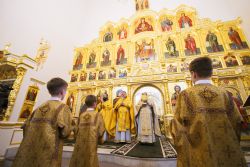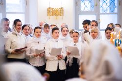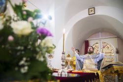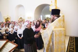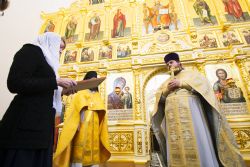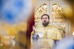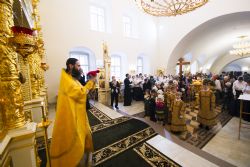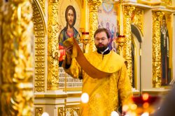 После чтения воскресного евангельского зачала отец Алексий обратился к молящимся с проповедью. По окончании Литургии он поблагодарил хоры и их руководителей за пение и поздравил всех присутствующих с важным событием в истории храма Сошествия Святого Духа — годовщиной со дня его великого освящения.