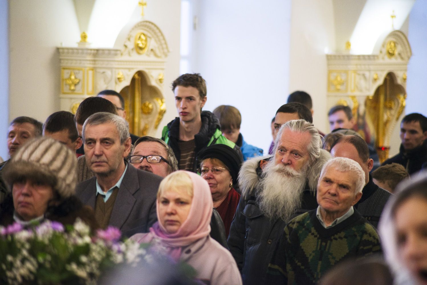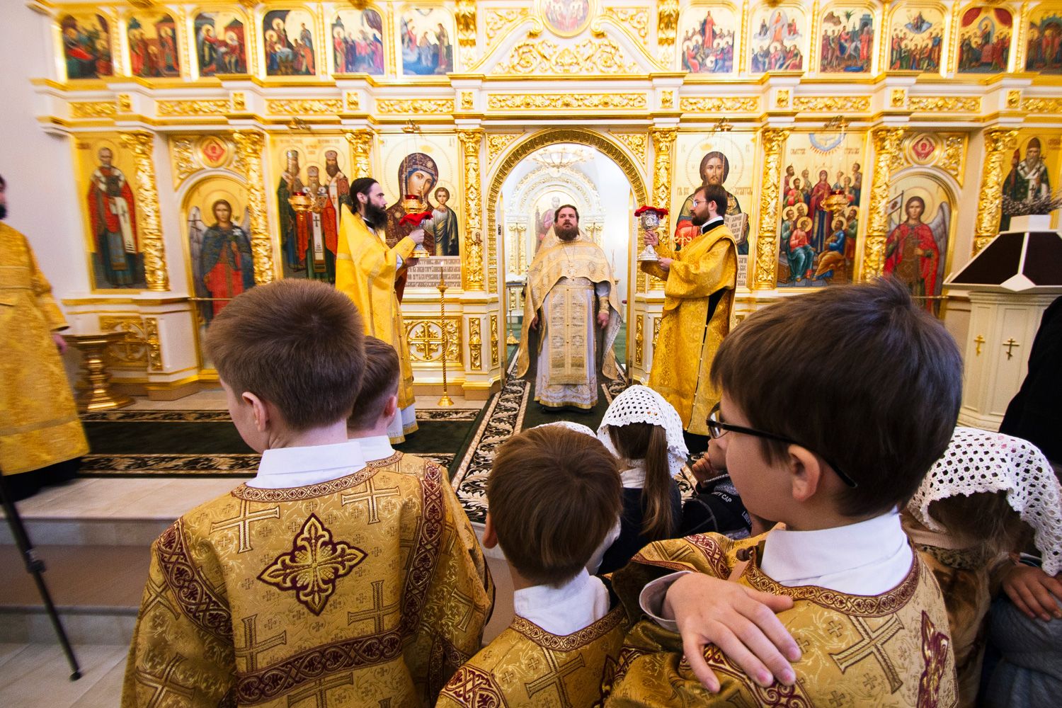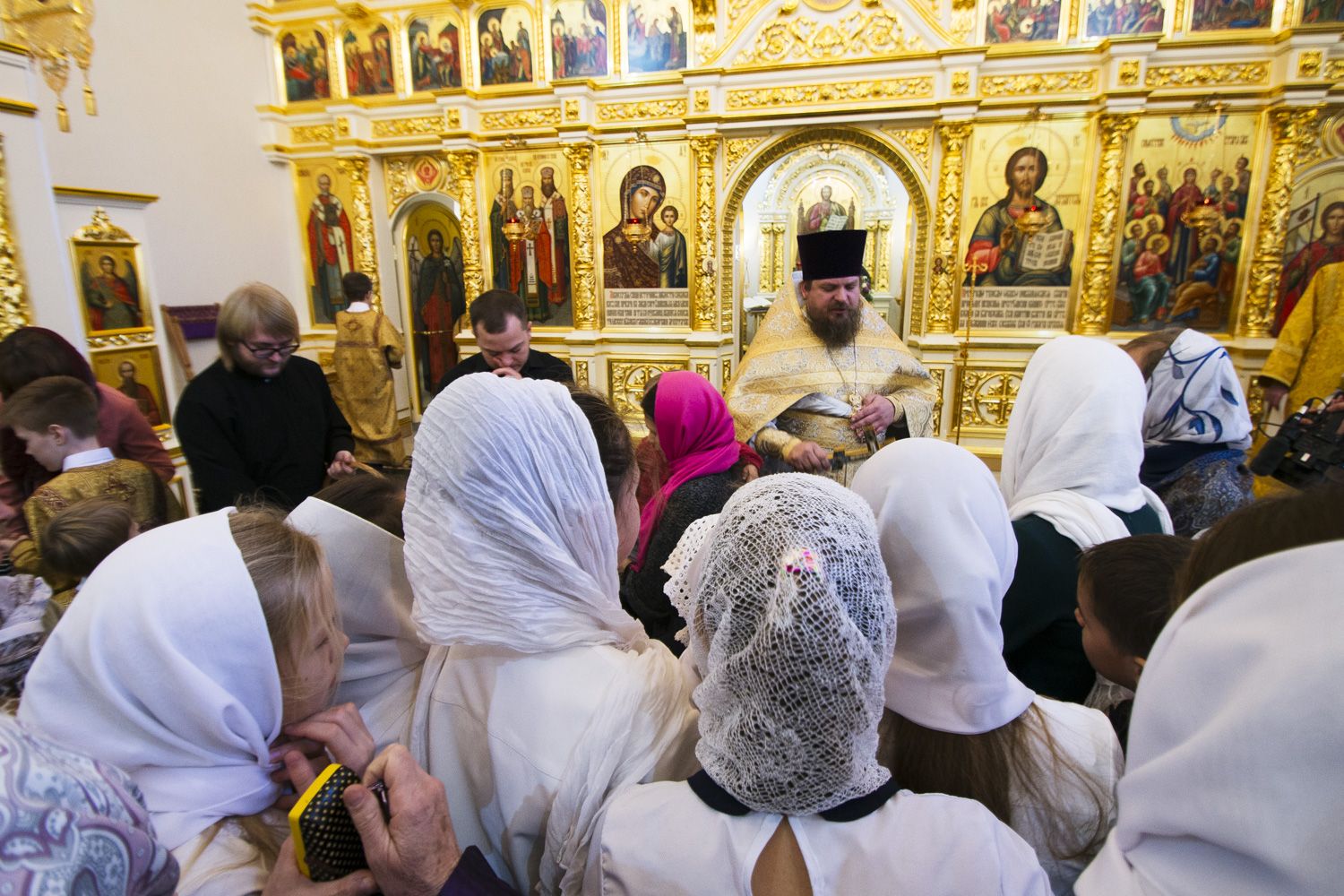 После чтения воскресного евангельского зачала отец Алексий обратился к молящимся с проповедью. По окончании Литургии он поблагодарил хоры и их руководителей за пение и поздравил всех присутствующих с важным событием в истории храма Сошествия Святого Духа — годовщиной со дня его великого освящения.