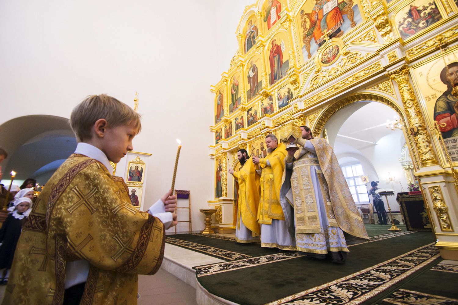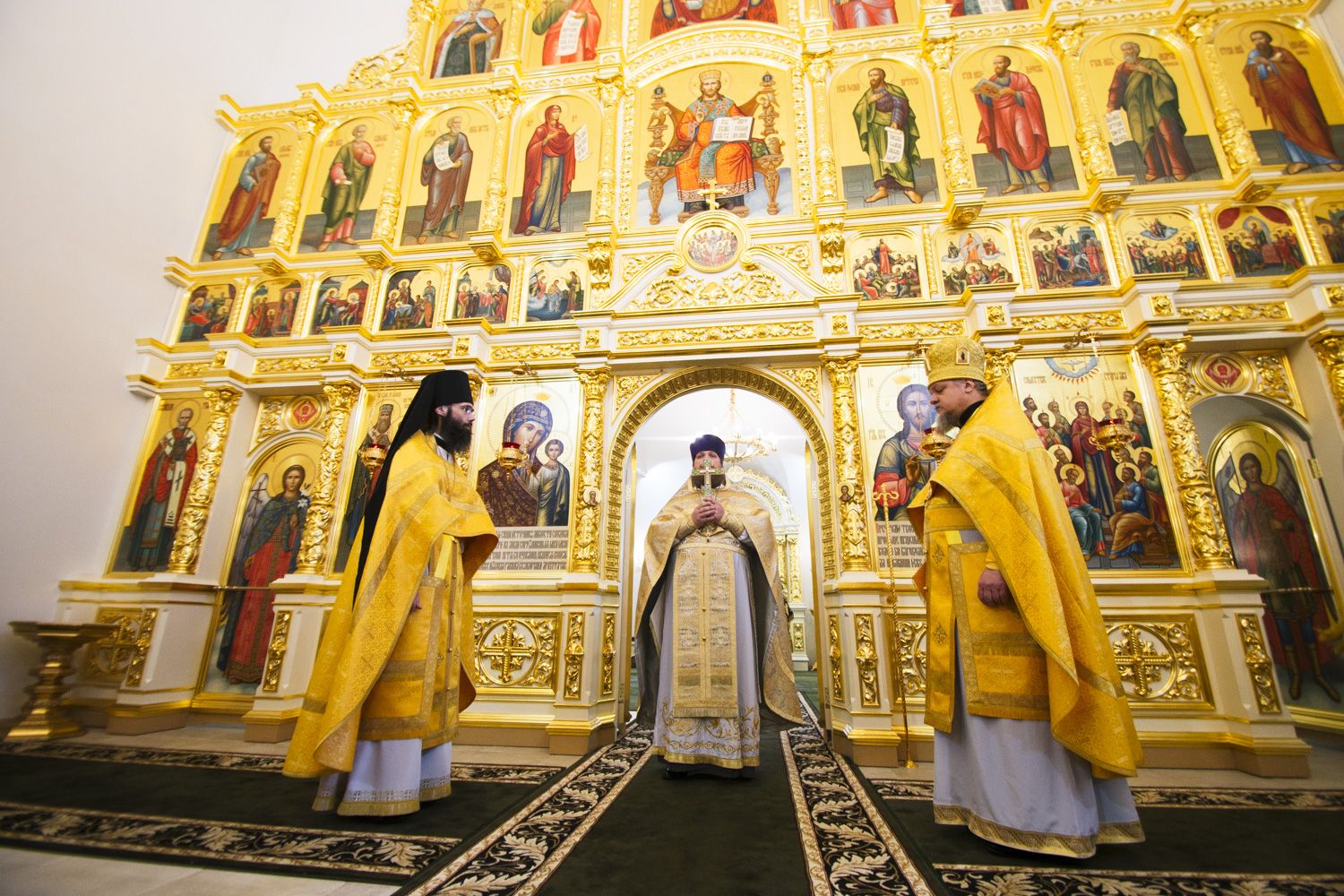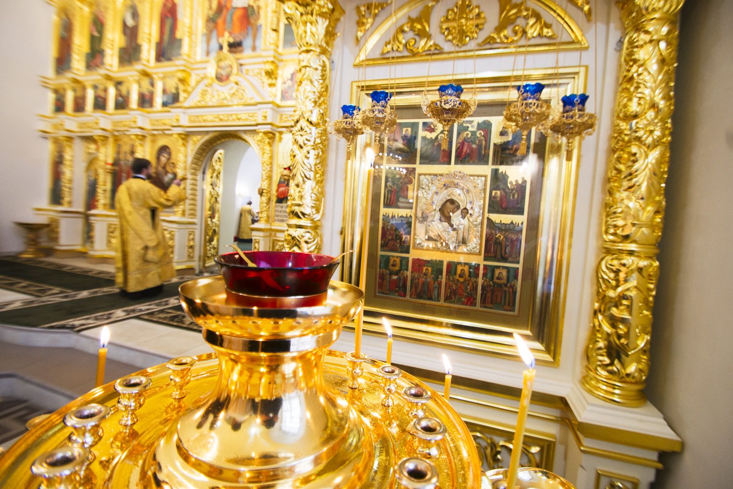 Праздничные торжества возглавил настоятель храма, благочинный I Казанского округа протоиерей Алексий Чубаков. За всенощным бдением на полиелее настоятель совершил чин освящения новых храмовых икон.