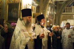 Песнопения всенощного бдения исполнил смешанный хор под управлением Николая Беляева.