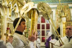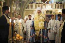 Его Высокопреосвященству сослужили клирики собора во главе с отцом настоятелем протоиереем Иоанном Барсуковым.