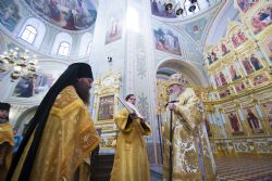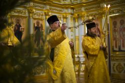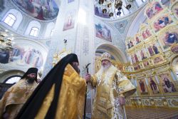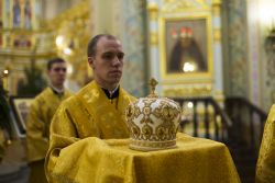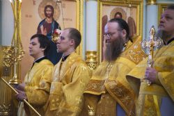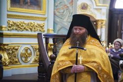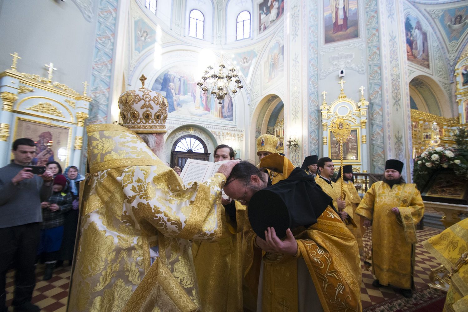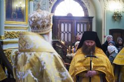 На малом входе глава митрополии возвел в сан игумена наместника Свияжского Успенского монастыря иеромонаха Симеона (Кулагина) и возложил на него наперсный крест.