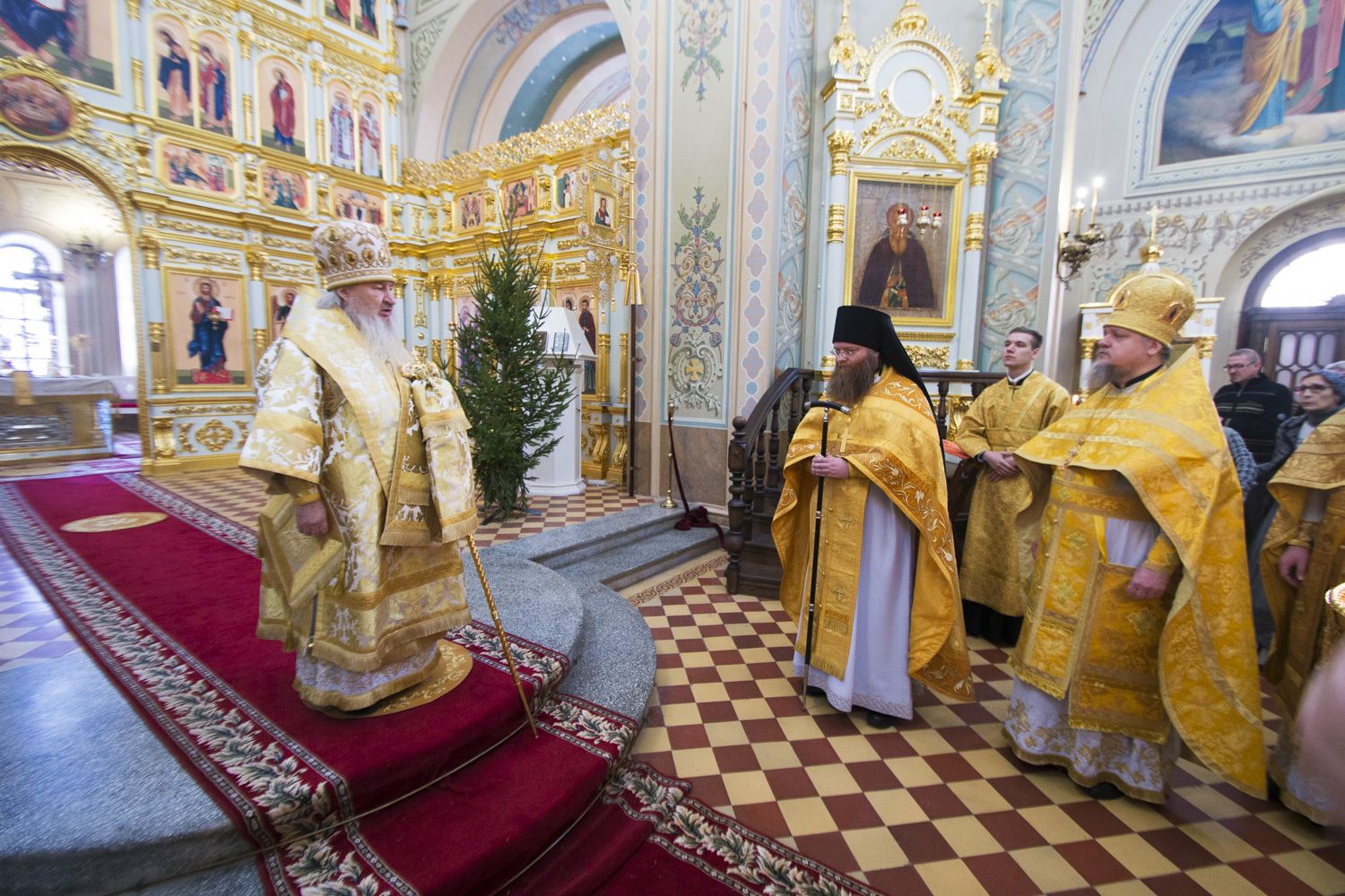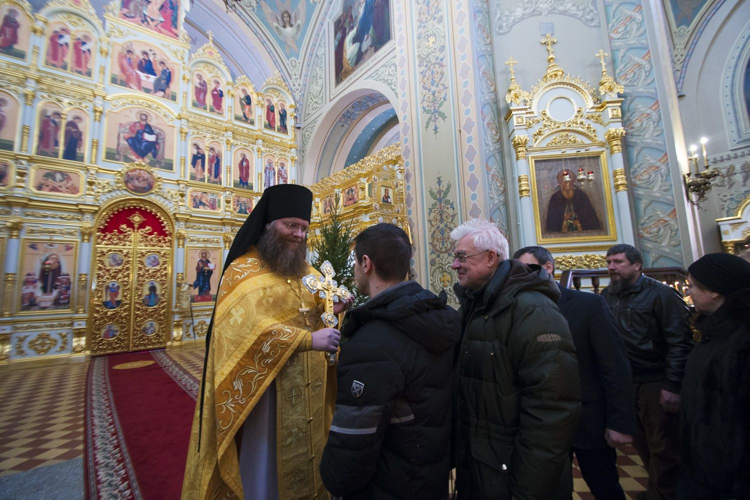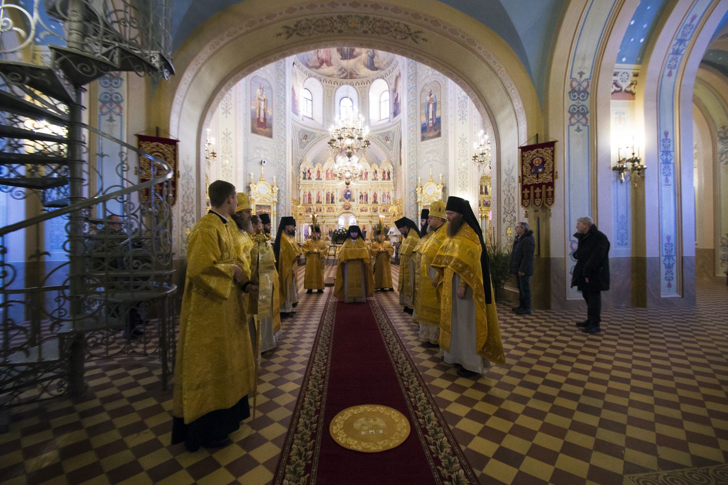 Главе Татарстанской митрополии сослужили новый наместник Свияжской обители иеромонах Симеон (Кулагин) с братией монастыря, настоятель Иоанно-Предтеченского мужского монастыря города Казани архимандрит Нектарий (Демин), секретарь Казанского епархиального управления протоиерей Владимир Самойленко, благочинный I Казанского округа протоиерей Алексий Чубаков, наместник Казанско-Богородицкого мужского монастыря игумен Марк (Виленский), настоятель Свято-Введенского Кизического мужского монастыря города Казани игумен Пимен (Ивентьев), и.о. наместника Раифского Богородицкого мужского монастыря иеромонах Илия (Казанцев), и.о. настоятеля Макарьевской мужской пустыни иеромонах Амвросий (Горновский).