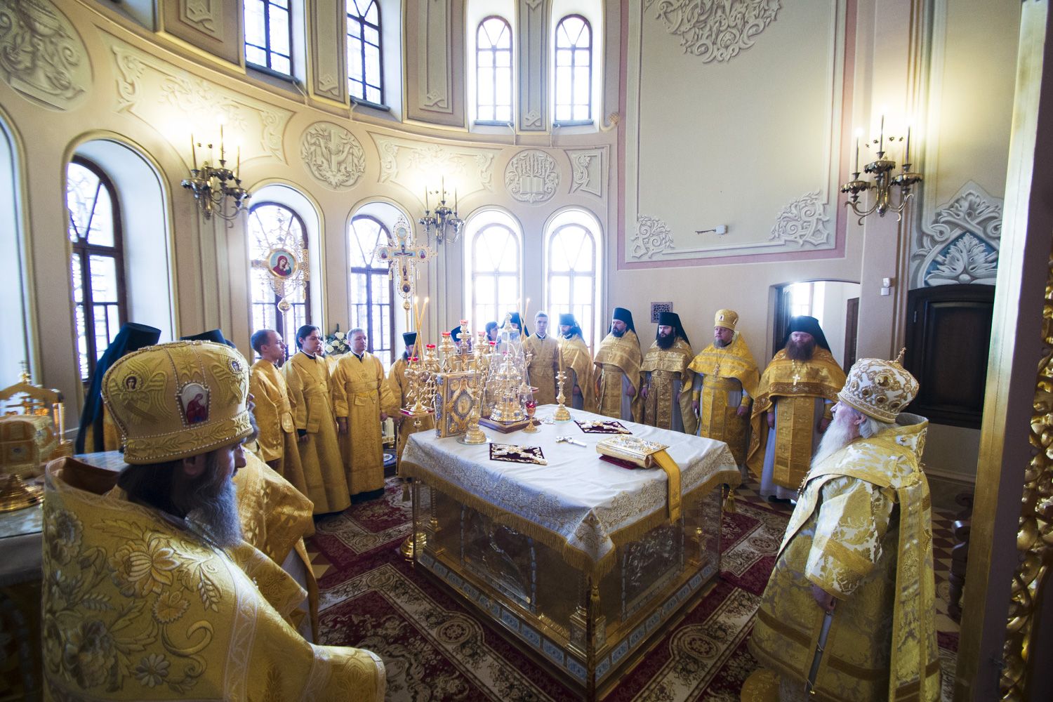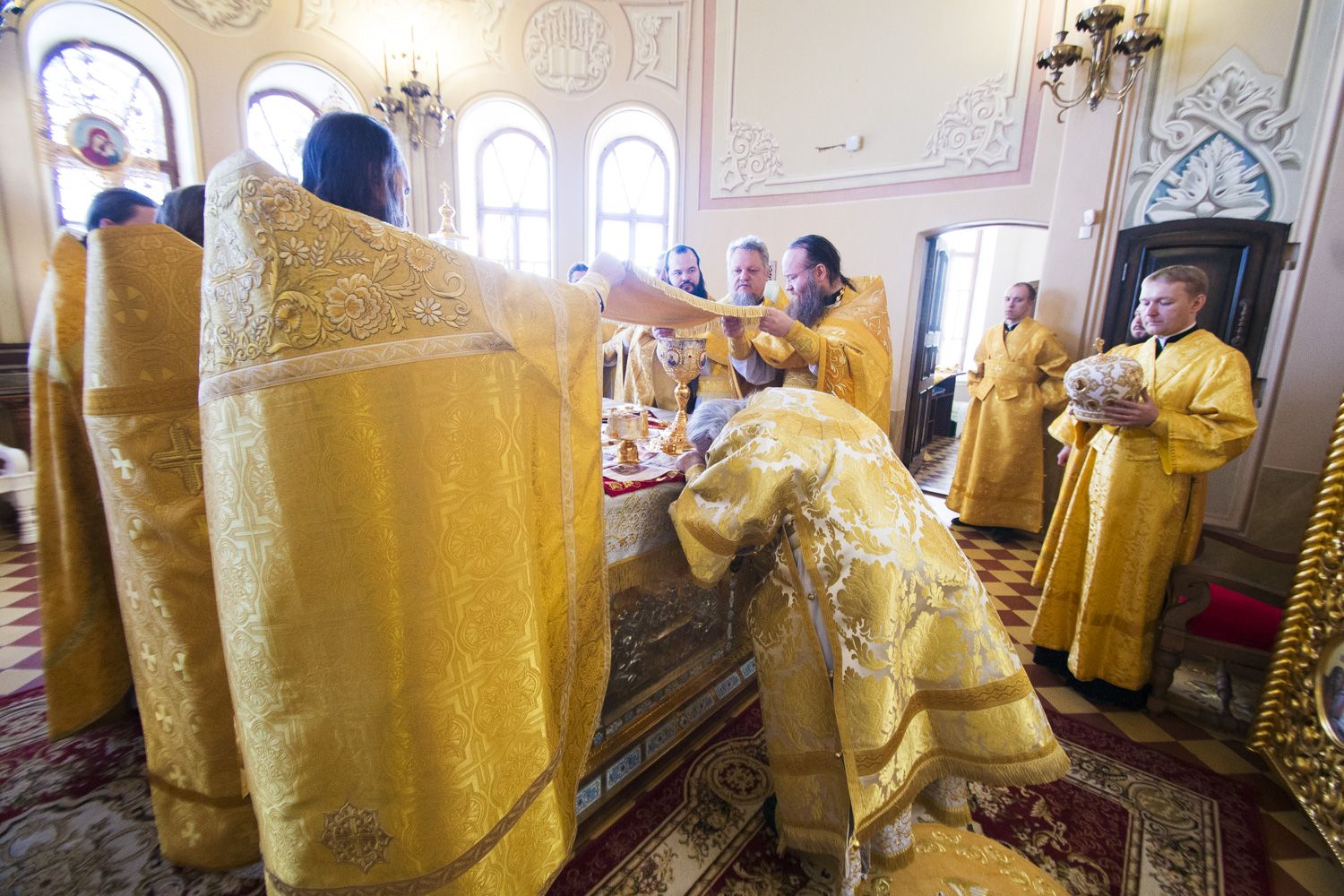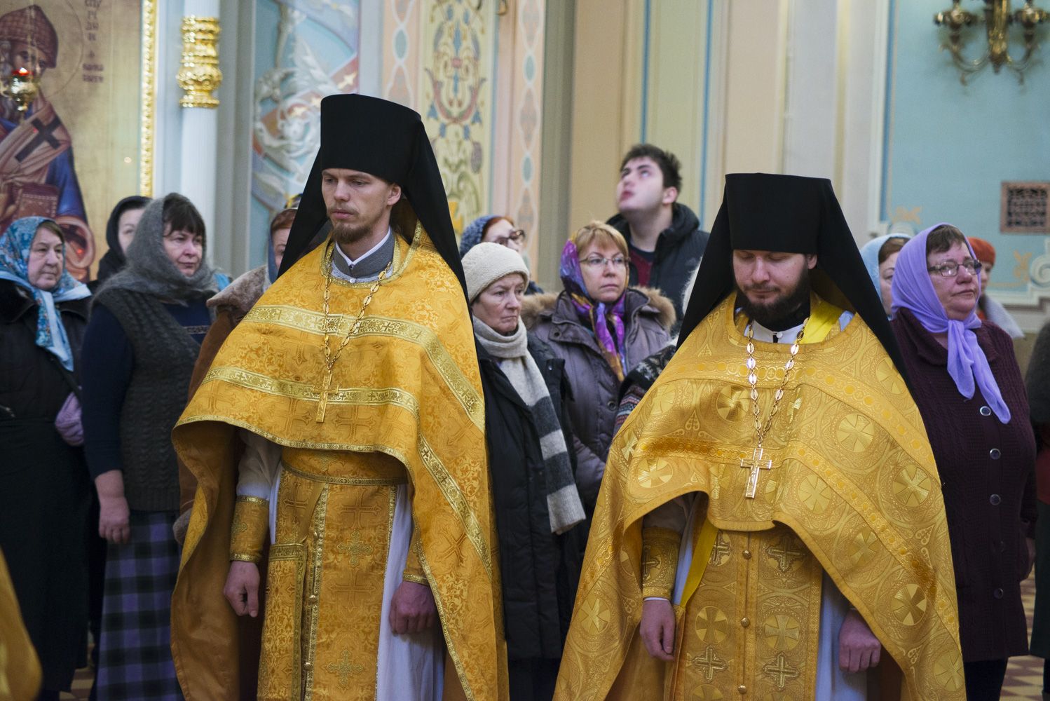 Главе Татарстанской митрополии сослужили новый наместник Свияжской обители иеромонах Симеон (Кулагин) с братией монастыря, настоятель Иоанно-Предтеченского мужского монастыря города Казани архимандрит Нектарий (Демин), секретарь Казанского епархиального управления протоиерей Владимир Самойленко, благочинный I Казанского округа протоиерей Алексий Чубаков, наместник Казанско-Богородицкого мужского монастыря игумен Марк (Виленский), настоятель Свято-Введенского Кизического мужского монастыря города Казани игумен Пимен (Ивентьев), и.о. наместника Раифского Богородицкого мужского монастыря иеромонах Илия (Казанцев), и.о. настоятеля Макарьевской мужской пустыни иеромонах Амвросий (Горновский).