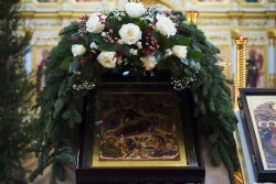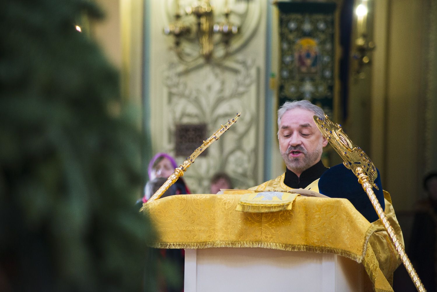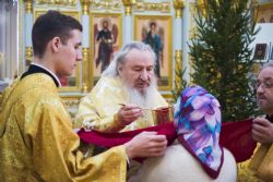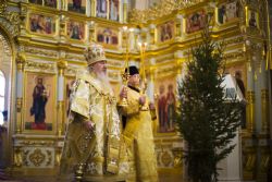 По заамвонной молитве духовенством было пропето славление празднику Рождества Христова.