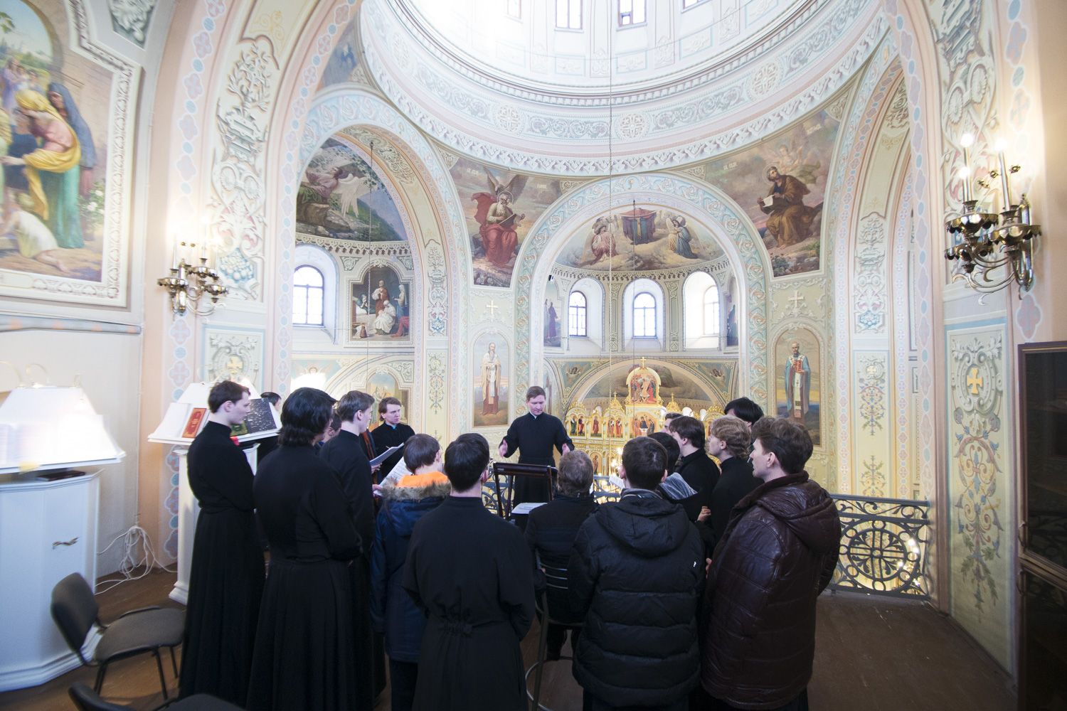 Песнопения Литургии исполнялись мужским хором Казанской духовной семинарии под управлением Дмитрия Никитина.