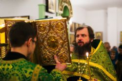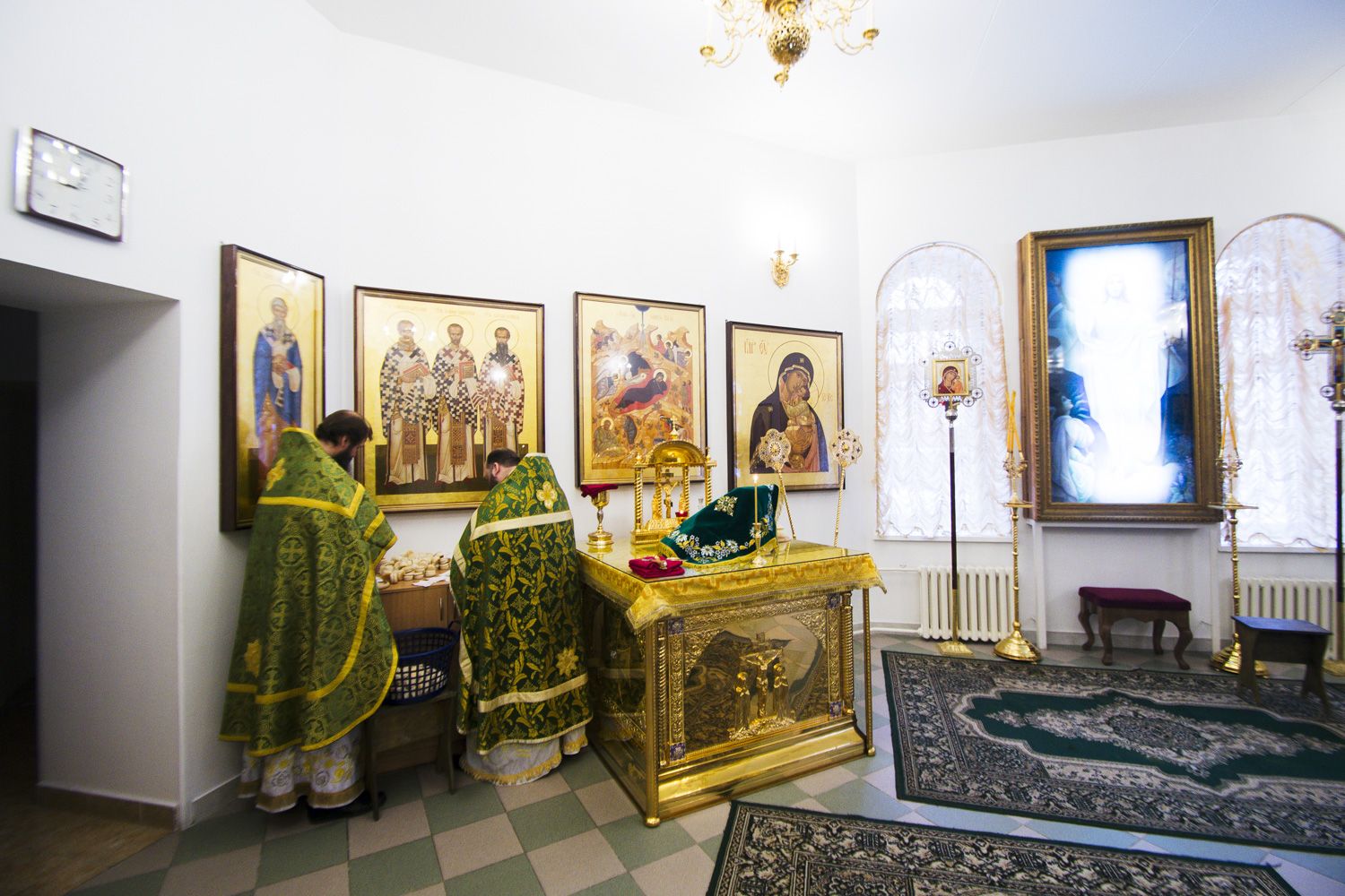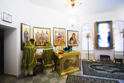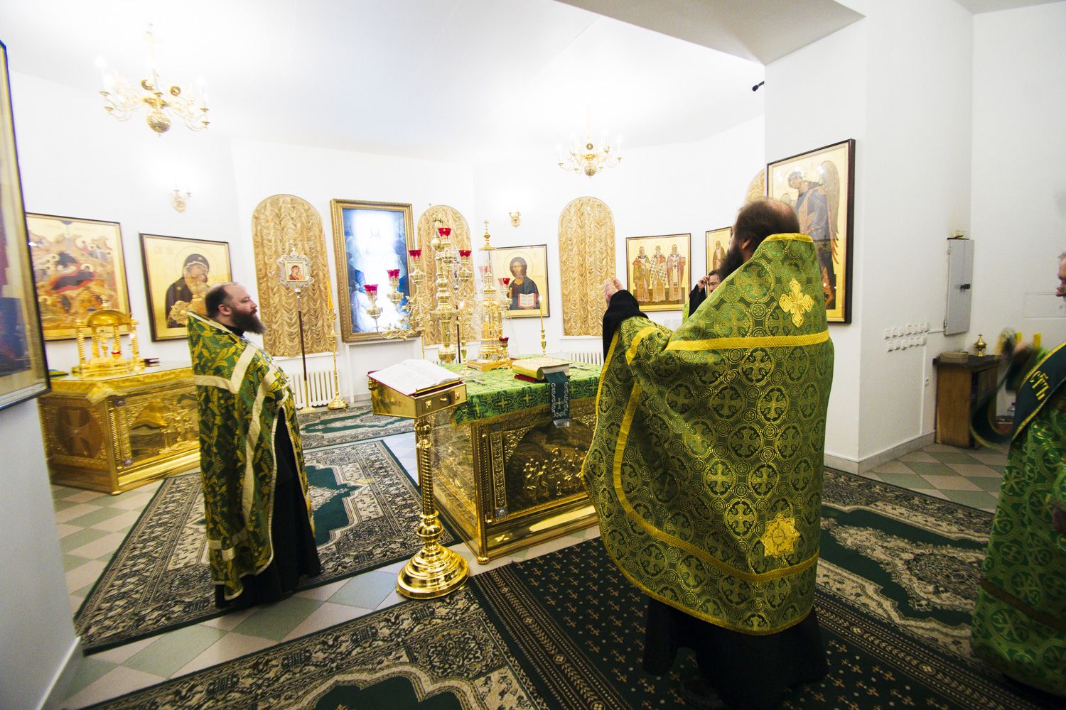 Позднюю Литургию возглавил настоятель прихода преподобного Серафима Саровского, председатель Отдела церковной благотворительности и социального служения Казанской епархии протоиерей Дмитрий Салков. Отцу Дмитрию сослужили клирики прихода. В завершение богослужения духовенством было совершено славление преподобному Серафиму Саровскому. Затем настоятель поздравил прихожан с престольным праздником и пожелал им в меру сил разделить молитвенный подвиг преподобного Серафима Саровского.