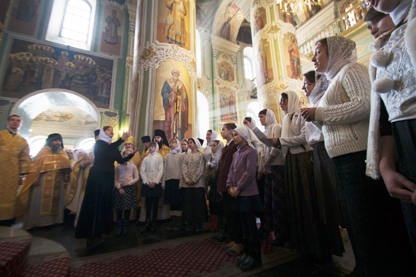10 января молодежный хор «Надежда» и младшие ученики воскресной школы побывали на торжественном богослужении в Благовещенском соборе Казанского Кремля, где выступили с музыкальным поздравлением управляющего Казанской епархией митрополита Феофана. Ученики преподнесли владыке изготовленный своими руками букет, в цветах которого были спрятаны конфеты.