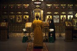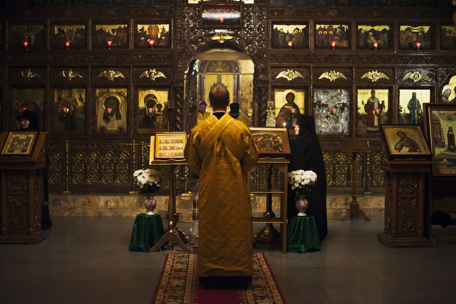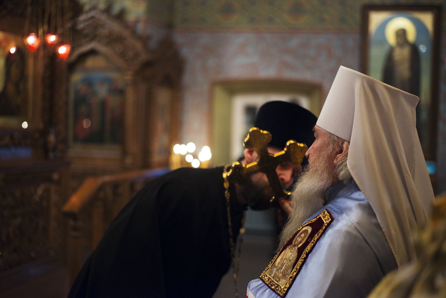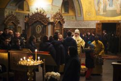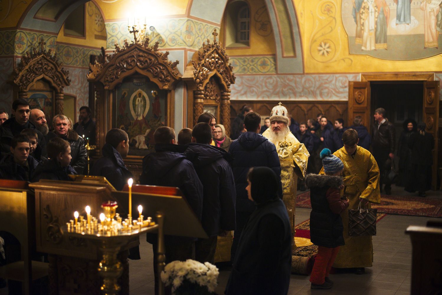 Его Высокопреосвященству сослужило духовенство обители: протоиерей Лин Кондаков, протоиерей Сергий Дятлов, иерей Владимир Луценко. За вечерним богослужением молилась игумения монастыря Сергия (Лакатош) с сестрами.