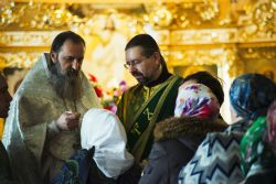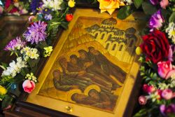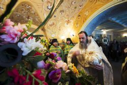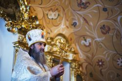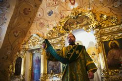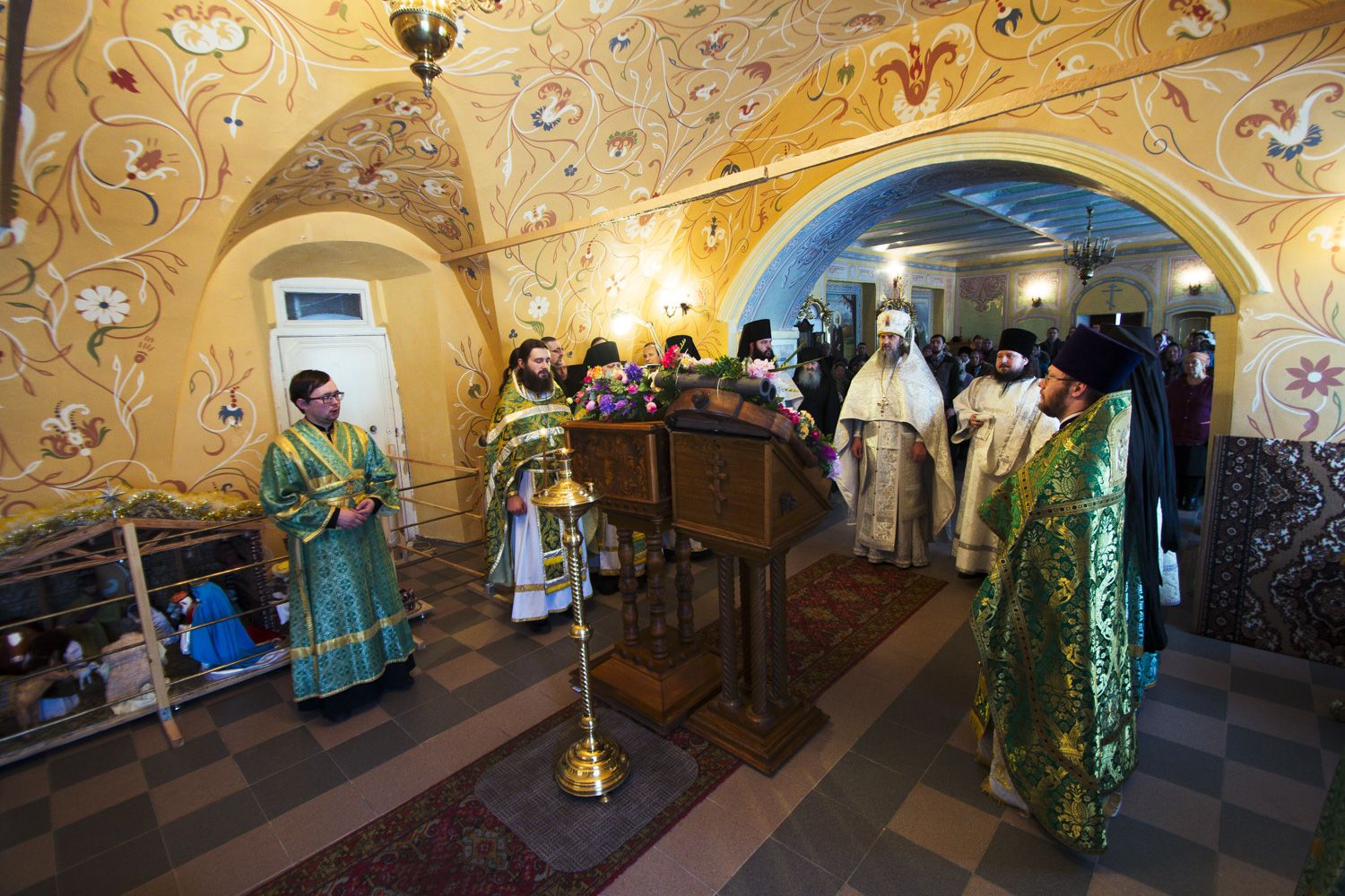 После заамвонной молитвы духовенством было пропето славление празднику Богоявления Господня и Раифским мученикам.