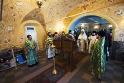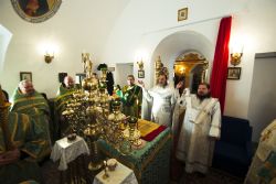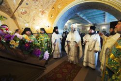 Божественную литургию в этот день возглавил настоятель Иоанно-Предтеченского мужского монастыря города Казани архимандрит Нектарий (Демин). Ему сослужили наместник Казанско-Богородицкого мужского монастыря игумен Марк (Виленский), наместник архиерейского подворья в честь священномученика Кирилла, митрополита Казанского, игумен Игнатий (Григорьев), настоятель храма Живоначальной Троицы города Казани иерей Андрей Колчков, насельники обители в священном сане.