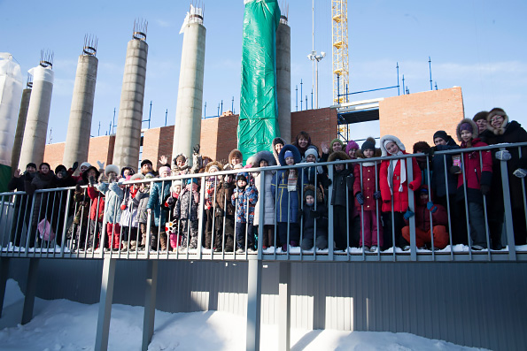 На память об этом дне у восстанавливающегося собора Казанской иконы Божией Матери была сделана общая фотография.
