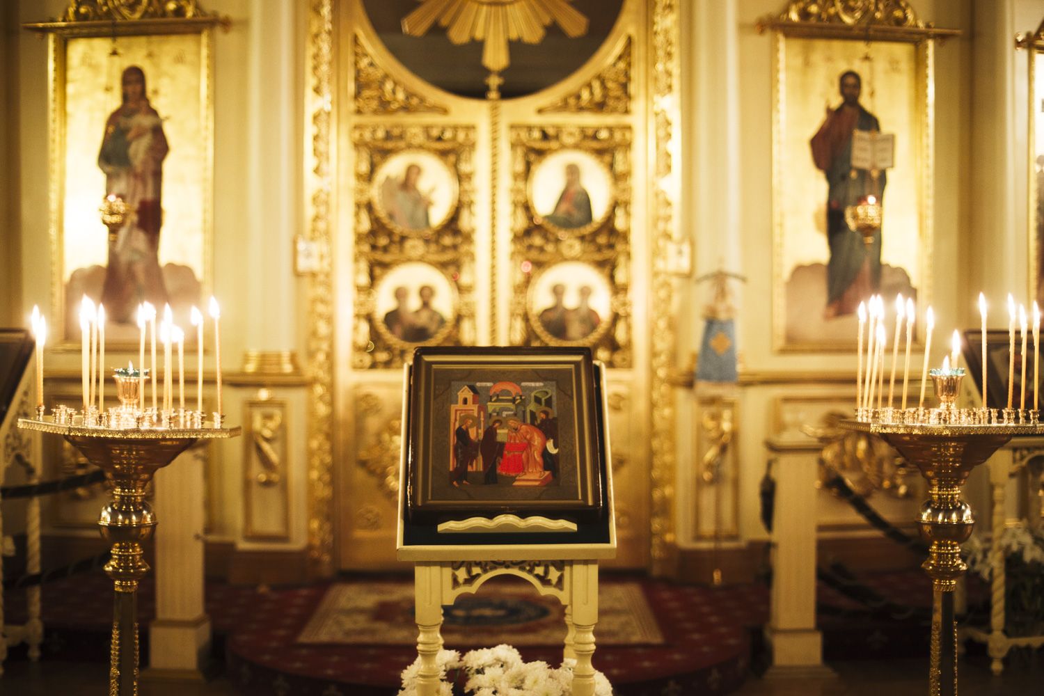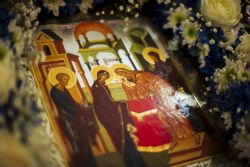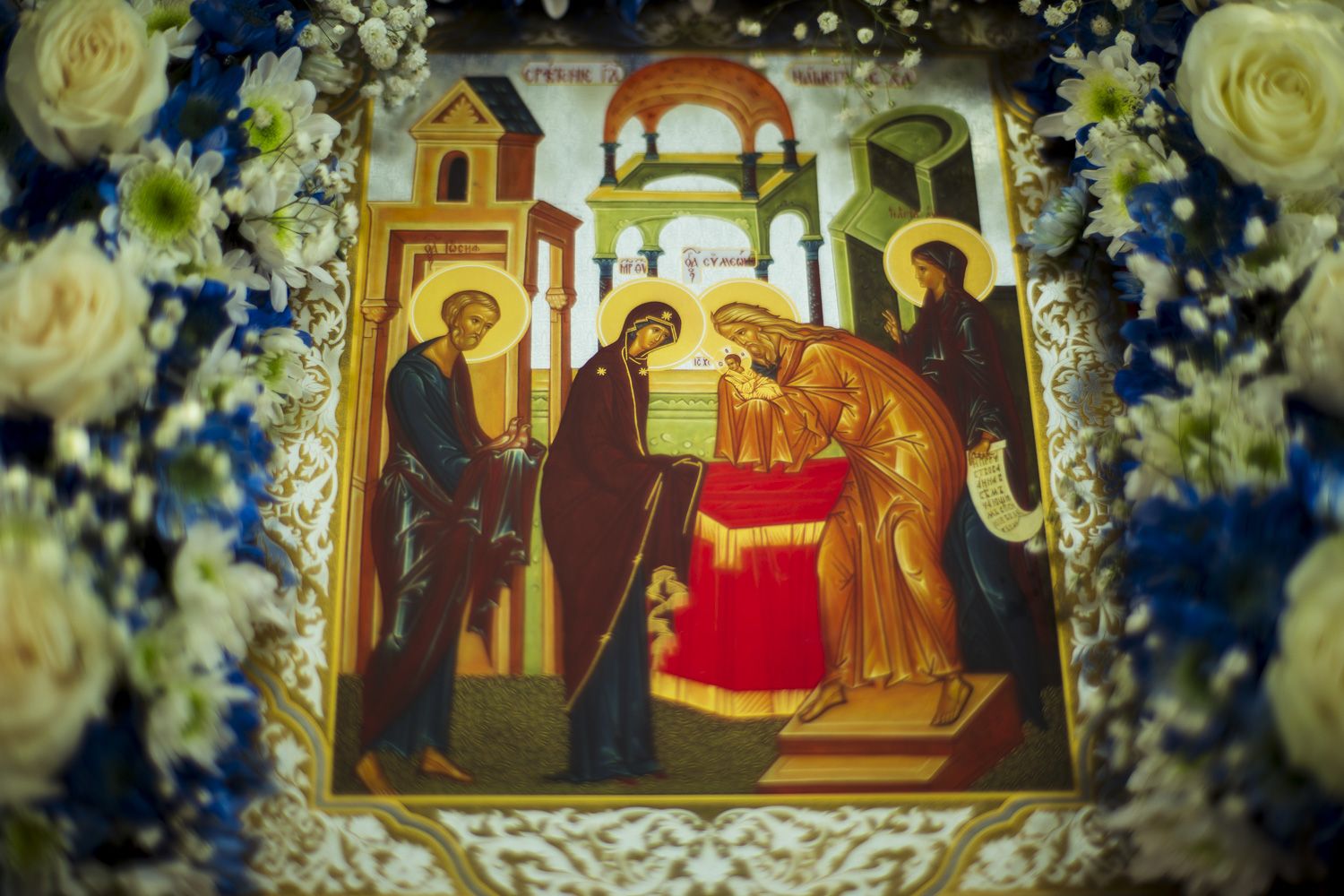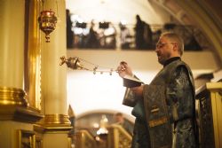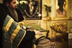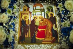 По заамвонной молитве духовенство пропело тропарь, кондак и величание празднику Сретения Господня.