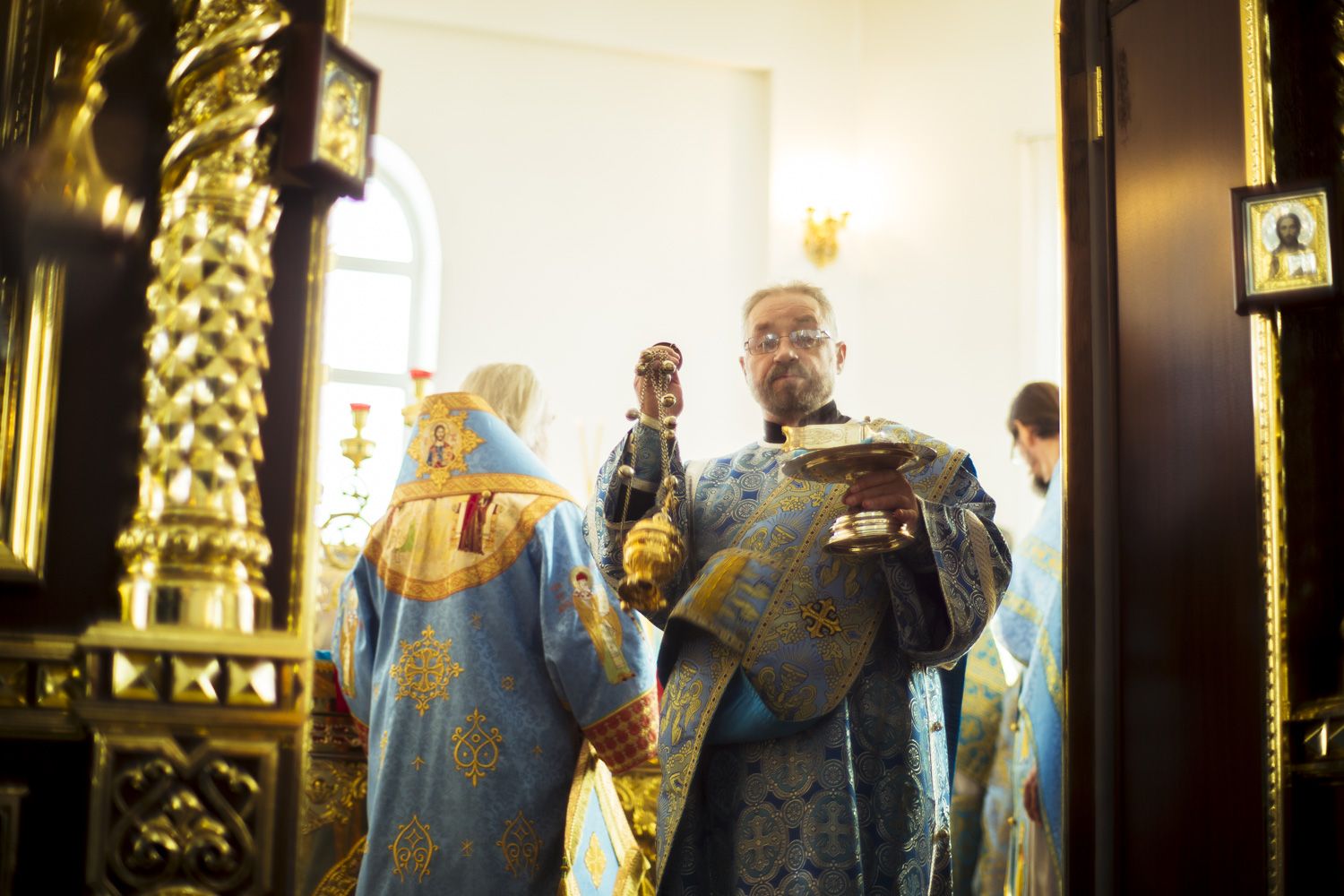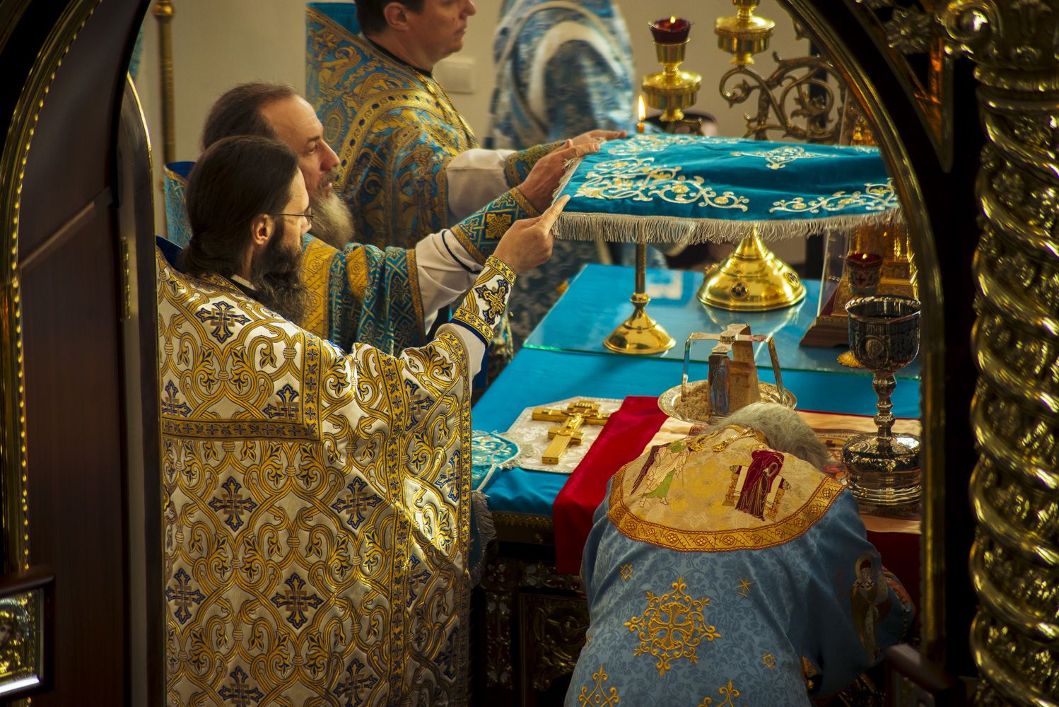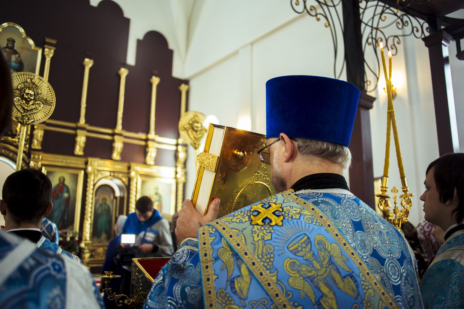За Литургией Его Высокопреосвященству сослужили благочинный Зеленодольского округа Казанской епархии протоиерей Святослав Мирганиев, настоятель Свято-Введенского Кизического мужского монастыря города Казани игумен Пимен (Ивентьев), настоятель Никольского прихода города Зеленодольска иерей Кирилл Назаров, настоятель храма Воздвижения Креста Господня поселка Васильево протоиерей Олег Батаев, настоятель храма Апостола Андрея Первозванного города Зеленодольска протоиерей Владимир Кондратьев, настоятель храма Илии Пророка села Ильинского протоиерей Константин Люкшин, клирик храма Святителя Николая Чудотворца города Зеленодольска протоиерей Евгений Мушкеев.