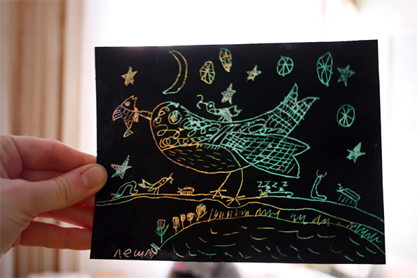 — На занятиях по рисованию, чтобы заинтересовать ребят, нужно использовать нетрадиционные техники, расширяющие представление детей об изобразительном искусстве и развивающие их воображение. Недавно ребята познакомились с одной из таких техник — граттажем, — рассказывает преподаватель.