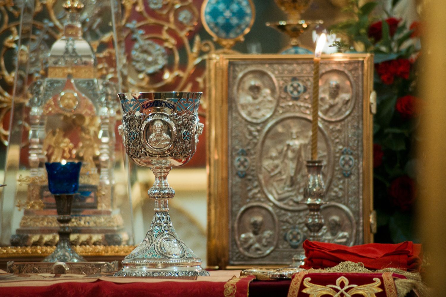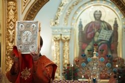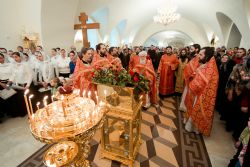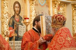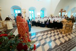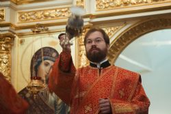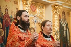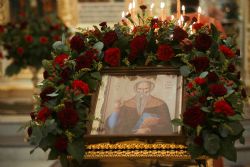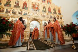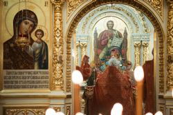 После заамвонной молитвы духовенством и верующими было пропето славление святому покровителю храма.