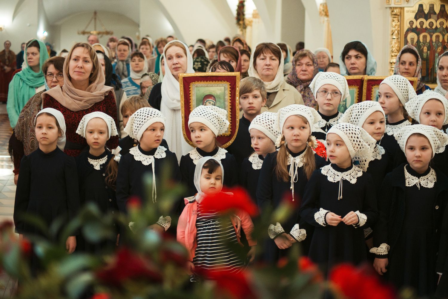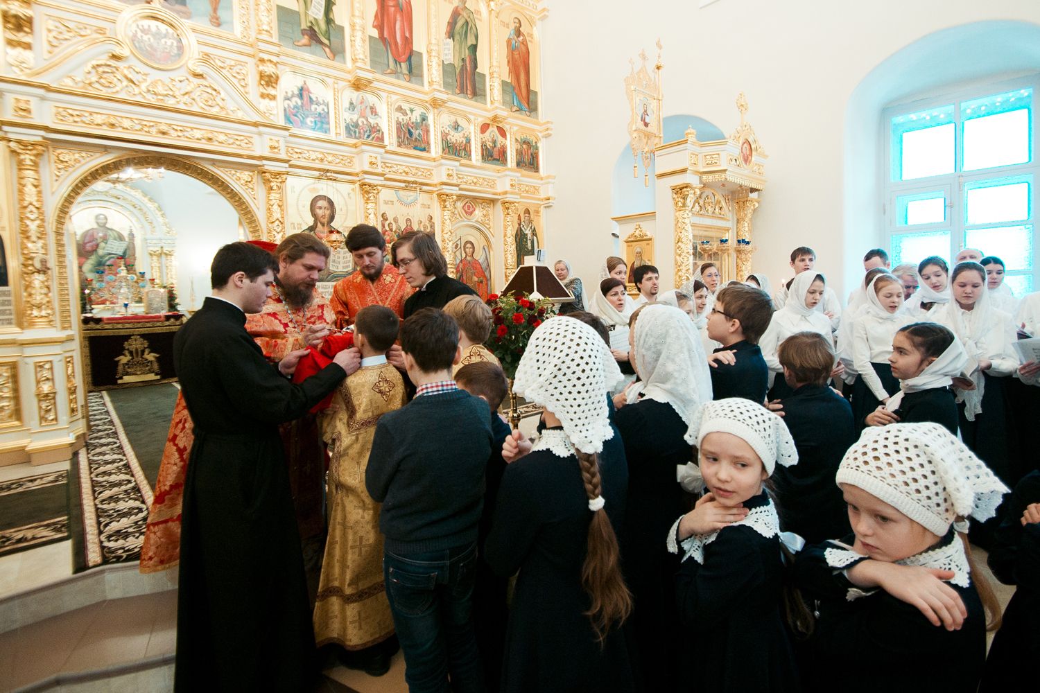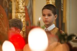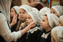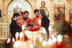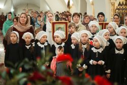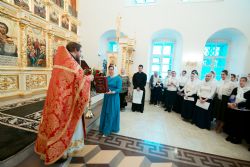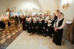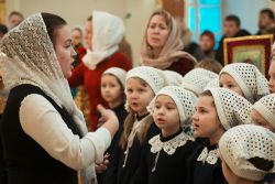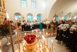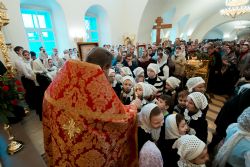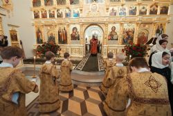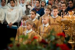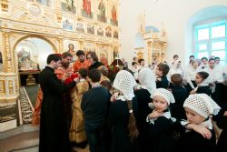 Песнопения Литургии исполнялись молодежным, детским и любительским хорами. За богослужением была возглашена заупокойная сугубая ектения о новопреставленном духовнике Свято-Троицкой Сергиевой Лавры, духовнике Святейшего Патриарха Алексия II архимандрита Кирилла (Павлова), почившего 20 февраля на 98-м году жизни.