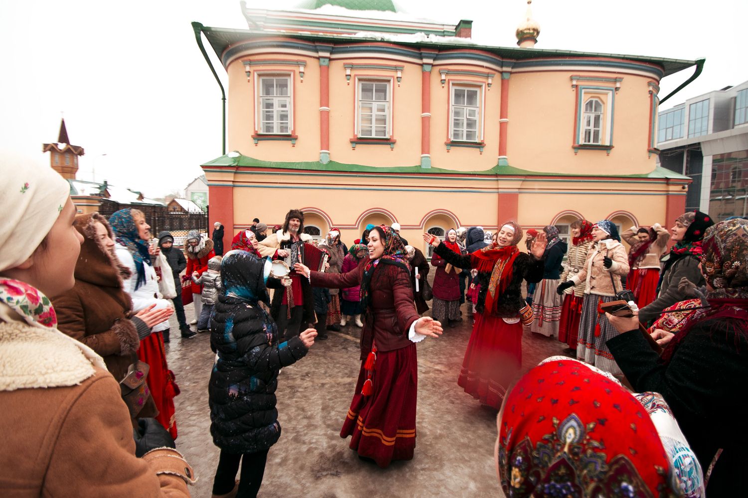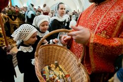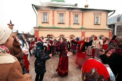 После богослужения во дворе храма состоялись традиционные масленичные гуляния. В программу вошли народные игры, хороводы, конкурсы и песни. Участников праздника угощали блинами. Отметим, что торжества были организованы при содействии фольклорно-этнографического ансамбля «Духов день».
