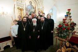 В богослужении также участвовали благочинный I Казанского округа, настоятель Духосошественского храма протоиерей Алексий Чубаков, настоятель Свято-Введенского Кизического мужского монастыря игумен Пимен (Ивентьев), клирики прихода.