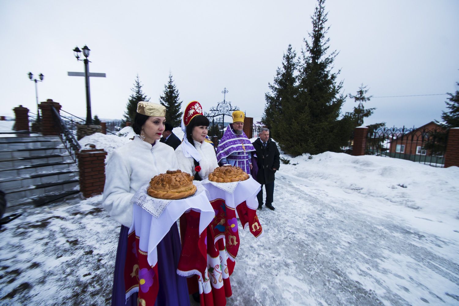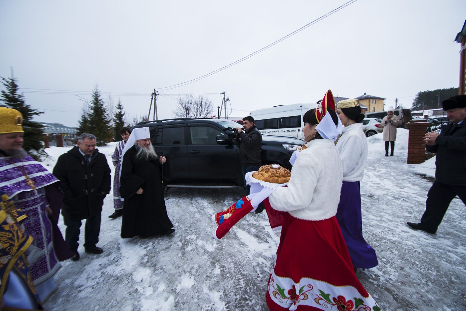У входа в храм Его Высокопреосвященство приветствовал глава Высокогорского района Республики Татарстан Рустам Калимуллин.